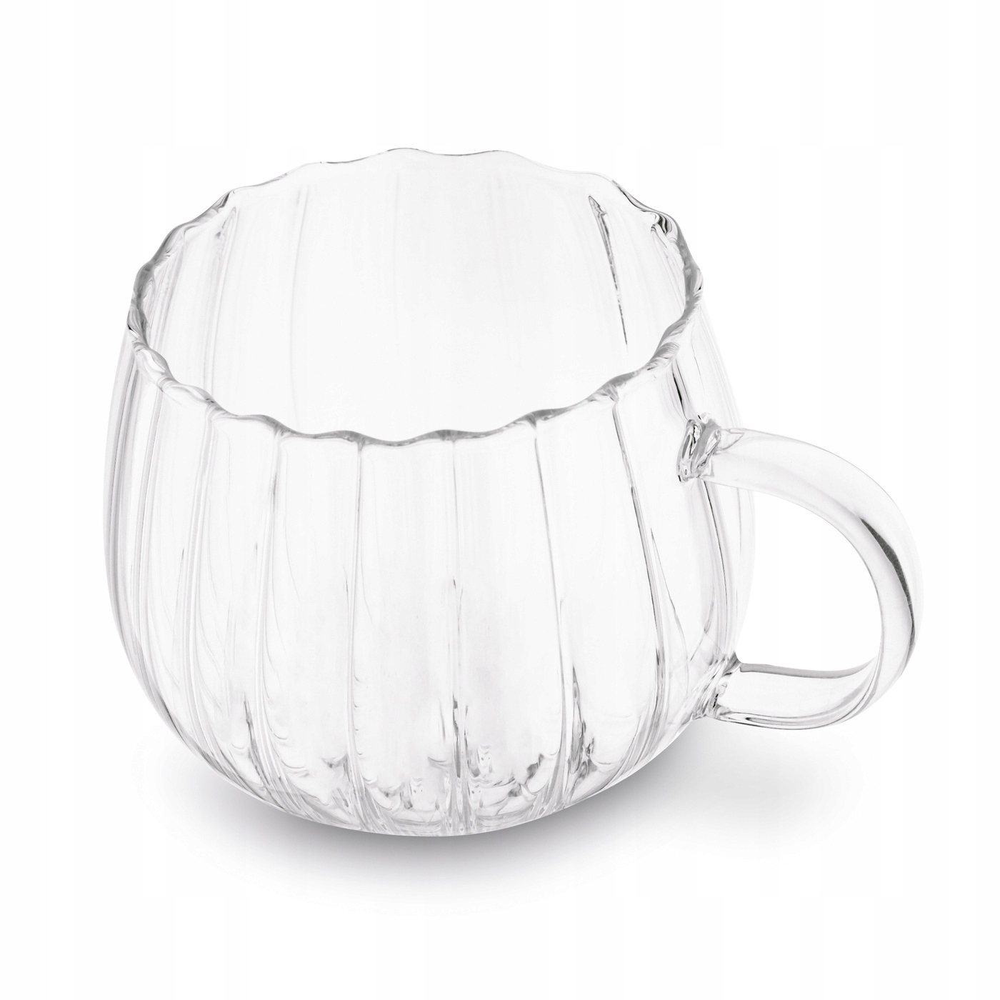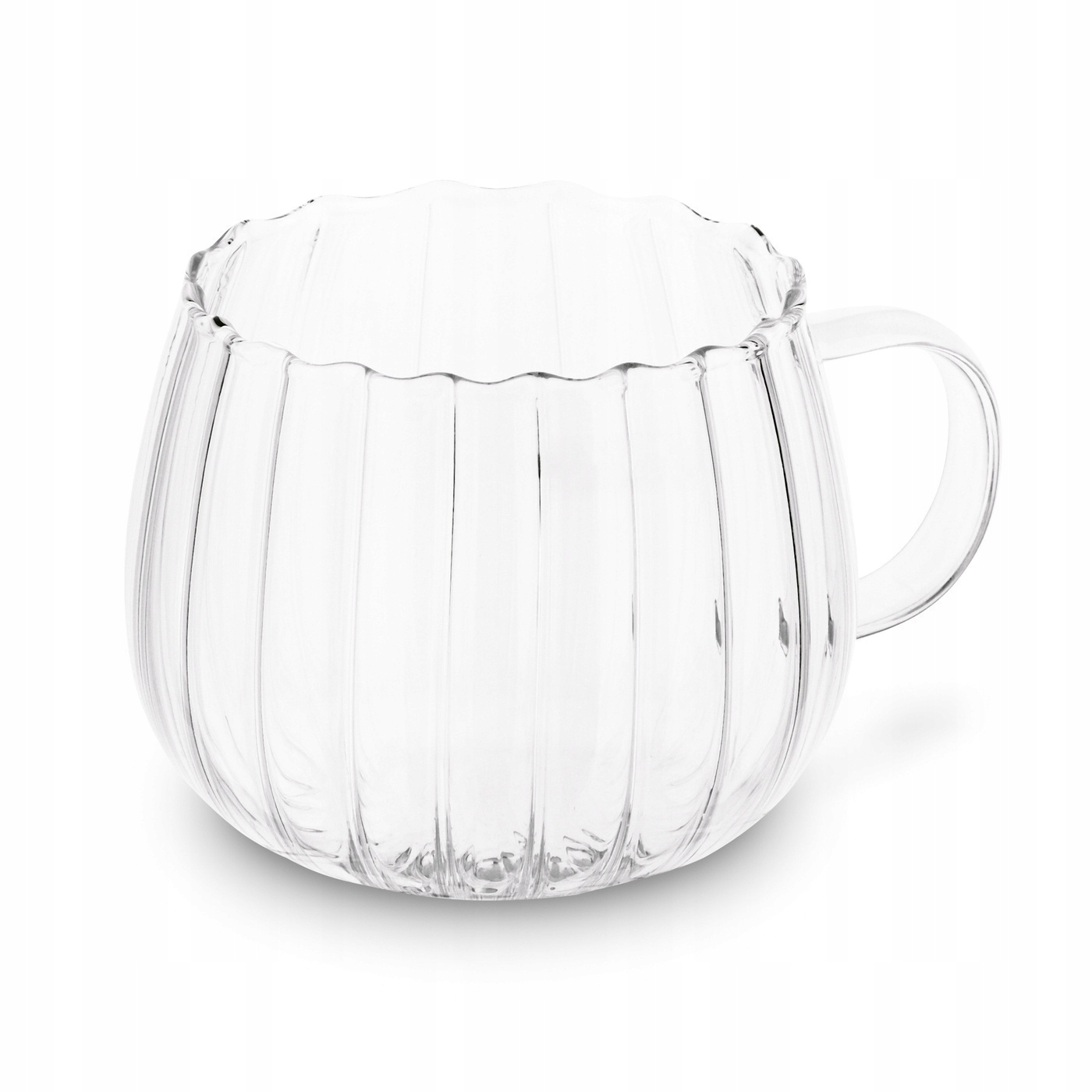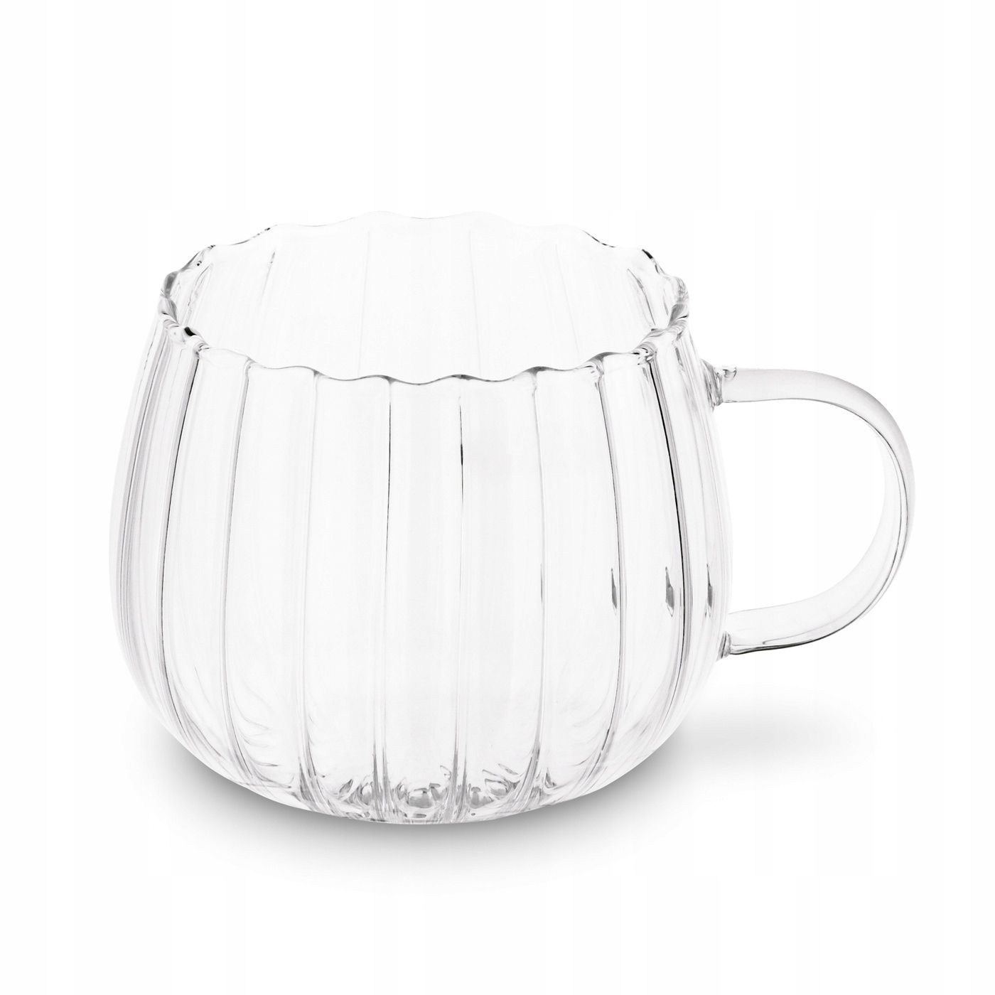 KOMPLET 6szt SZKLANEK z uchem FALA bańka 400 ml na kawę herbatę latte kubek