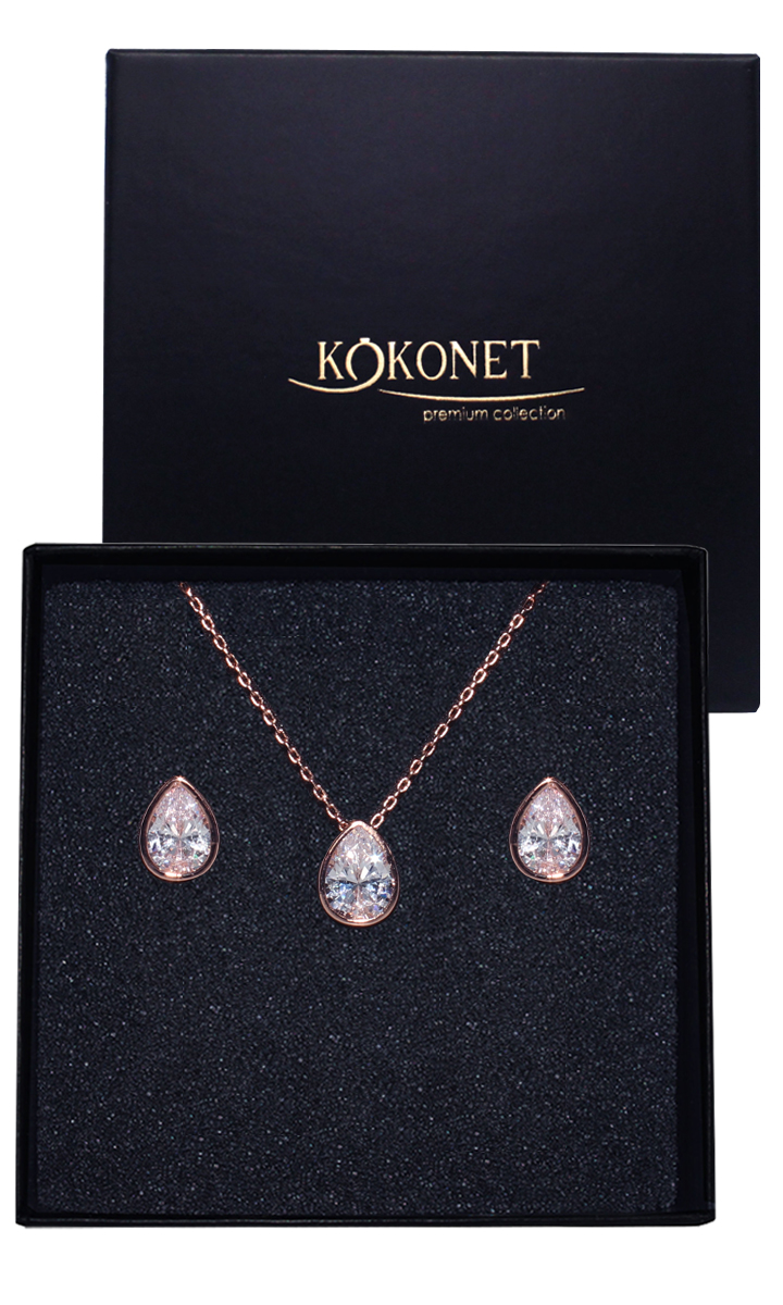 Komplet biżuterii różowe złoto cyrkonie ŁEZKI na ślub wesele galę okazję
