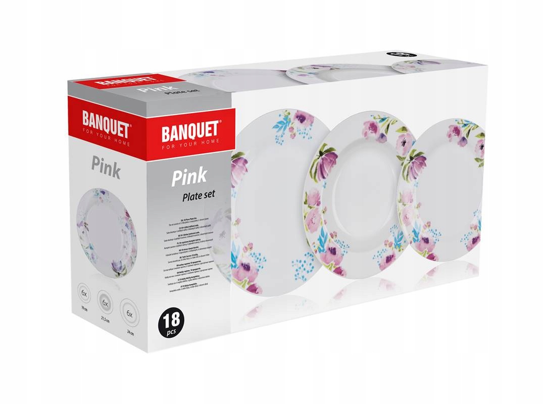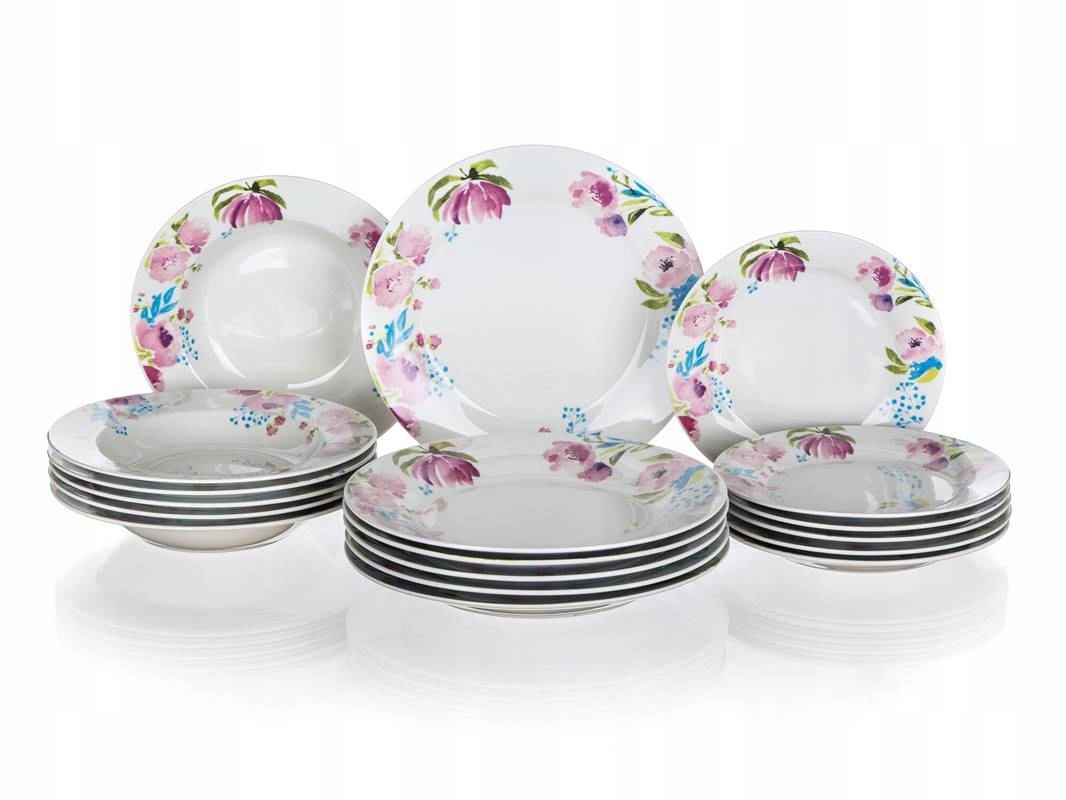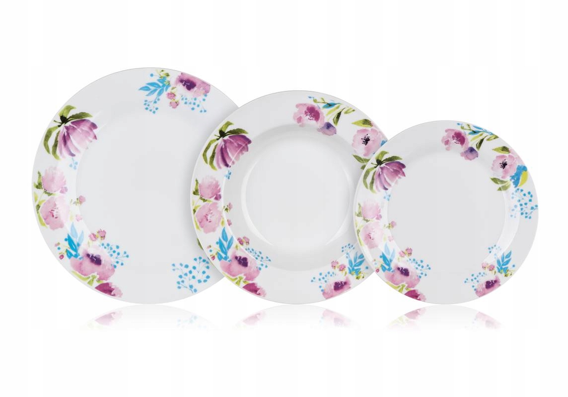 KOMPLET OBIADOWY 6 osób W RÓŻOWE KWIATY BANQUET talerze jadalnia serwis