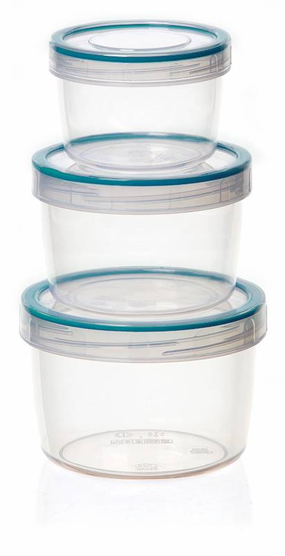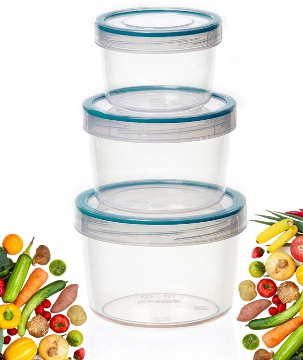 KOMPLET POJEMNIKI PLASTIKOWE OKRĄGŁE NA JEDZENIE przekąski 0,25+0,5+0,7 L