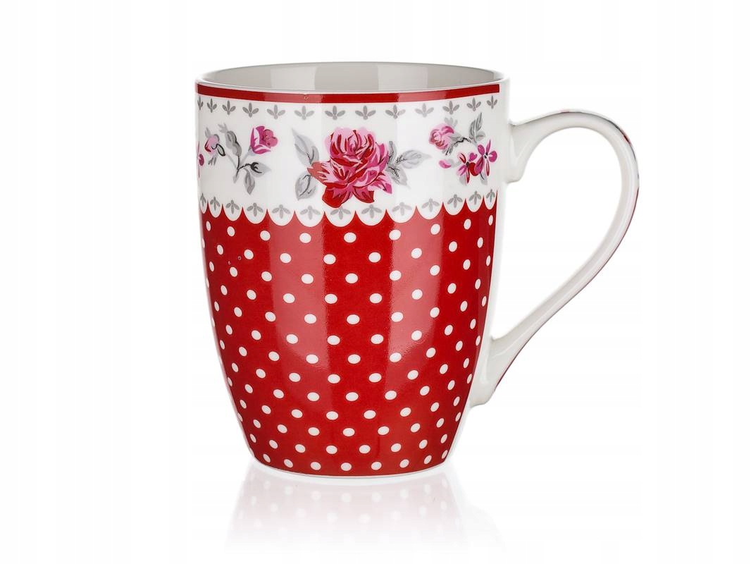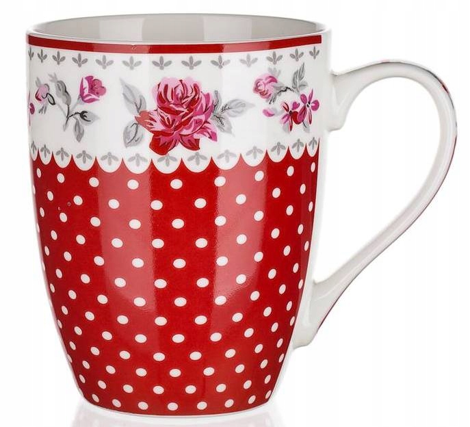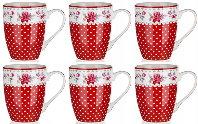 KUBEK CZERWONY W kropki KWIATY 6x340ml na kawę herbatę zioła prezent święta