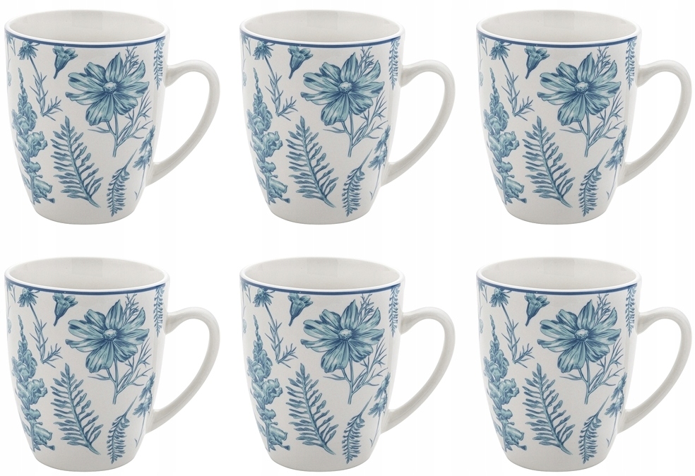 KUBEK KOMPLET 6szt NIEBIESKIE KWIATY zioła 350 ml na kawę PREZENT herbatę