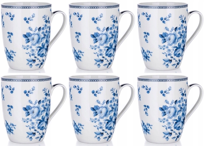 KUBEK W NIEBIESKIE KWIATY 6x380 ml na kawę herbatę prezent święta bliskich