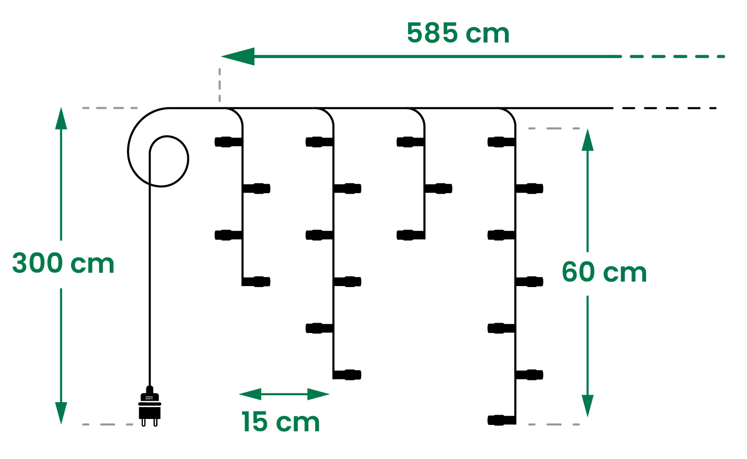 ➡️ Innowacyjna jest możliwość łączenia kilku kurtyn w grupę sterując nimi, w tym samym momencie. Ten model kurtyny zawiera wielokolorowe lampki.  Zasilacz długi na 3 metry pozwala na umiejscowienie kurtyny praktycznie w każdym miejscu domu lub ogrodu.