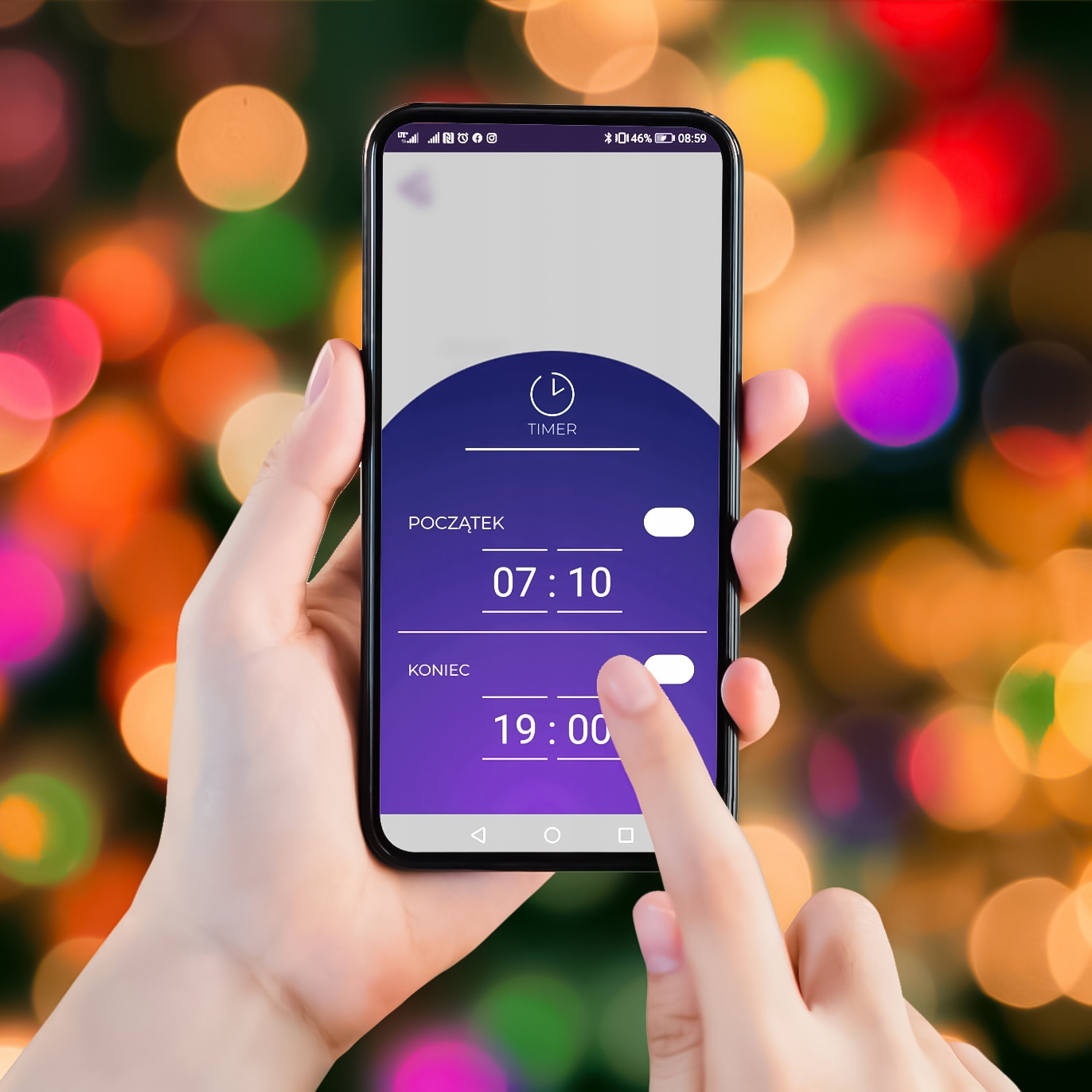 ➡️ Pozwala też ona na ustawianie timera, w jakich godzinach kurtyna ma być włączona. Tempo oraz intensywność światła można zmieniać za pomocą suwaka. Łączność jest bezprzewodowa.