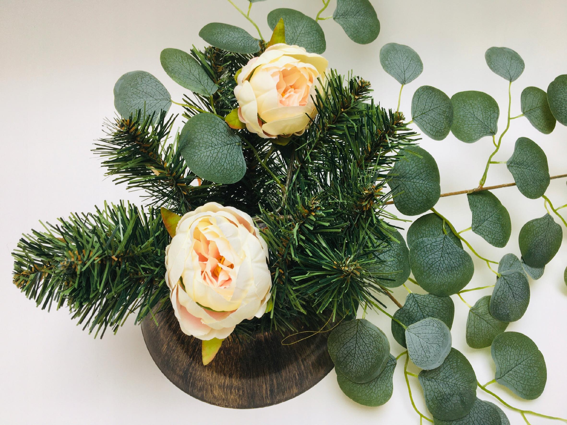 KWIATY sztuczne piwonia KREMOWA główka do stroika wiązanki cmentarz grób