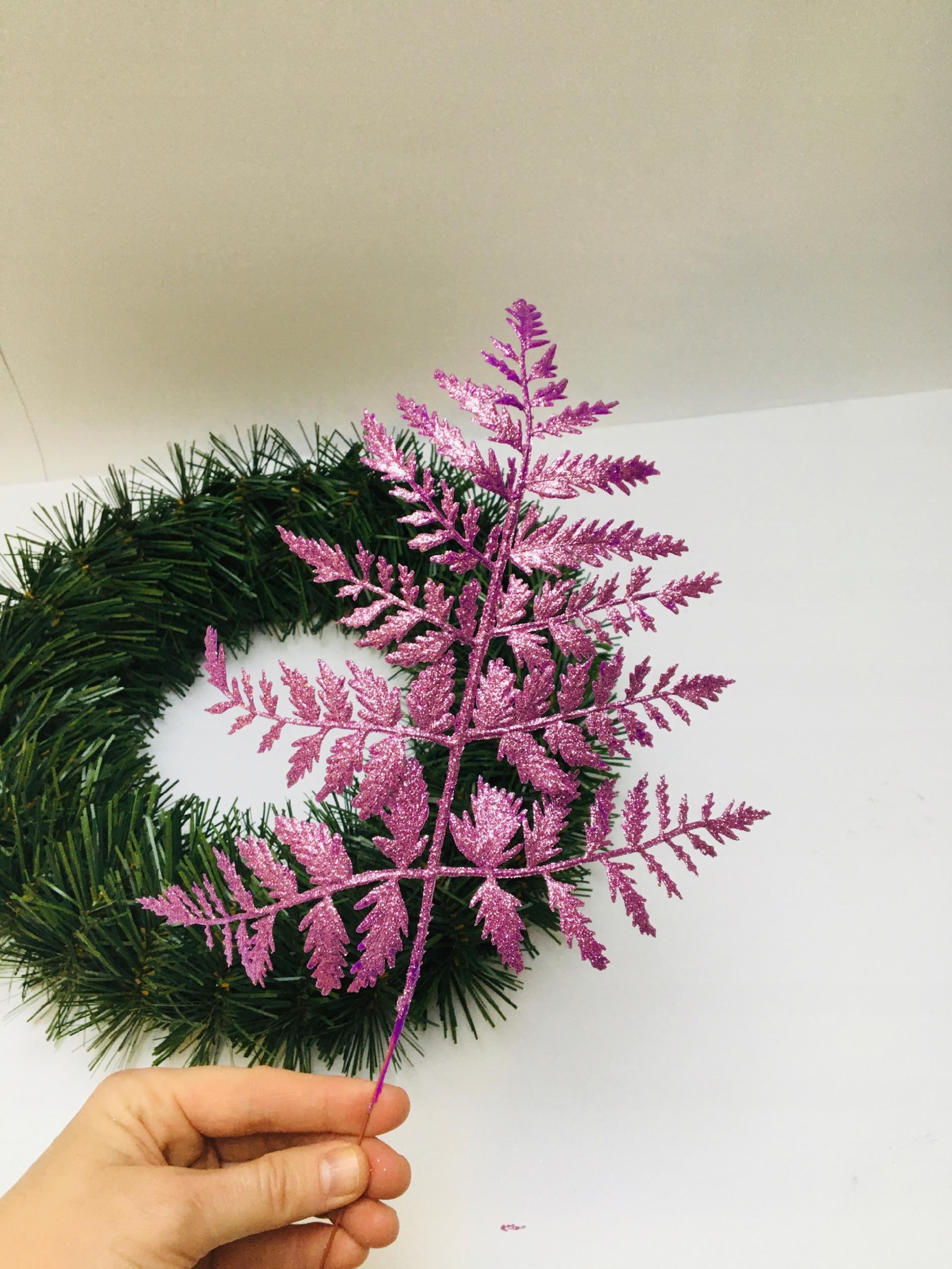 LIŚĆ SZTUCZNY brokatowy fiolet GAŁĄZKA do dekorowania wianka stroika święta