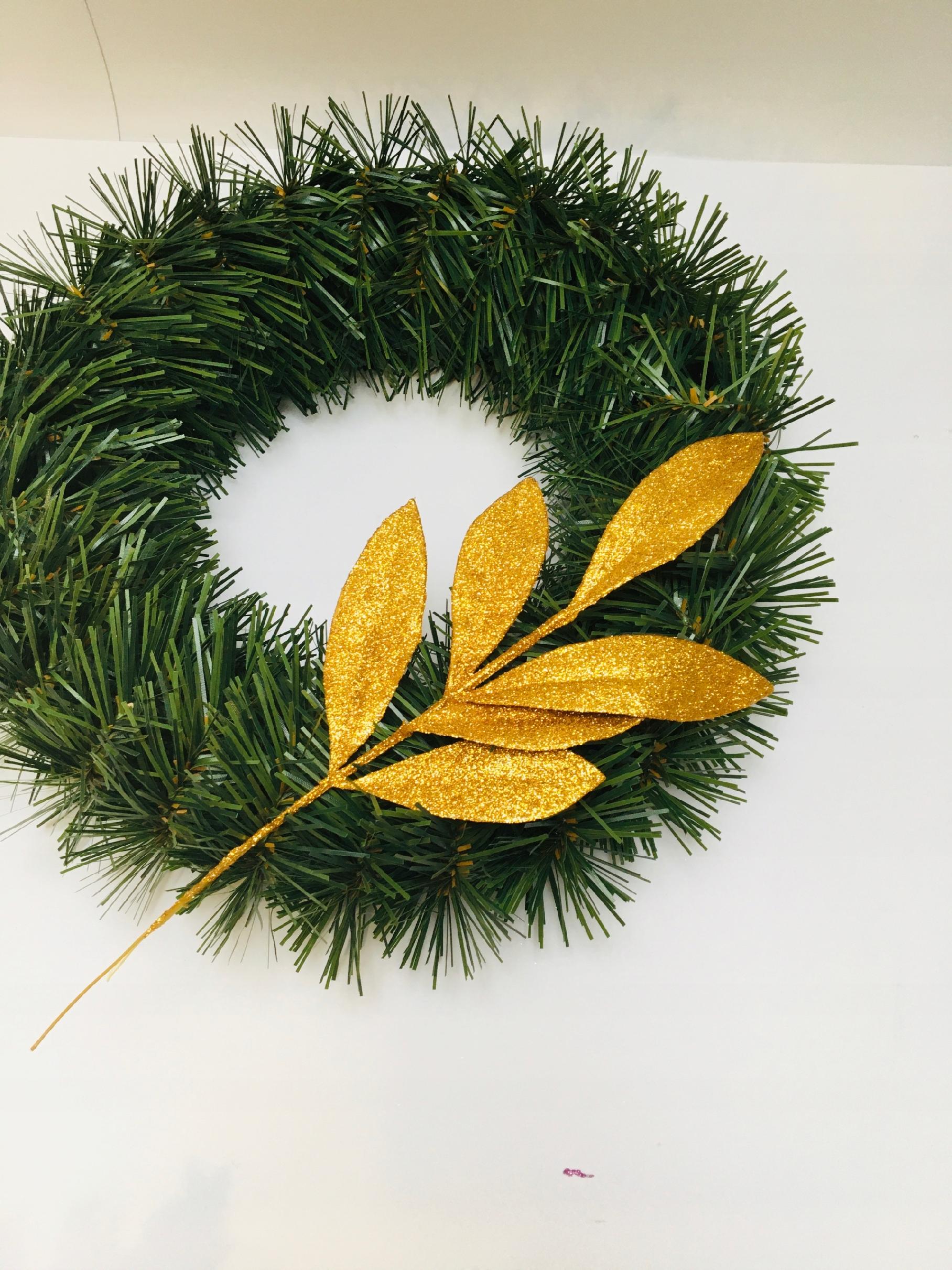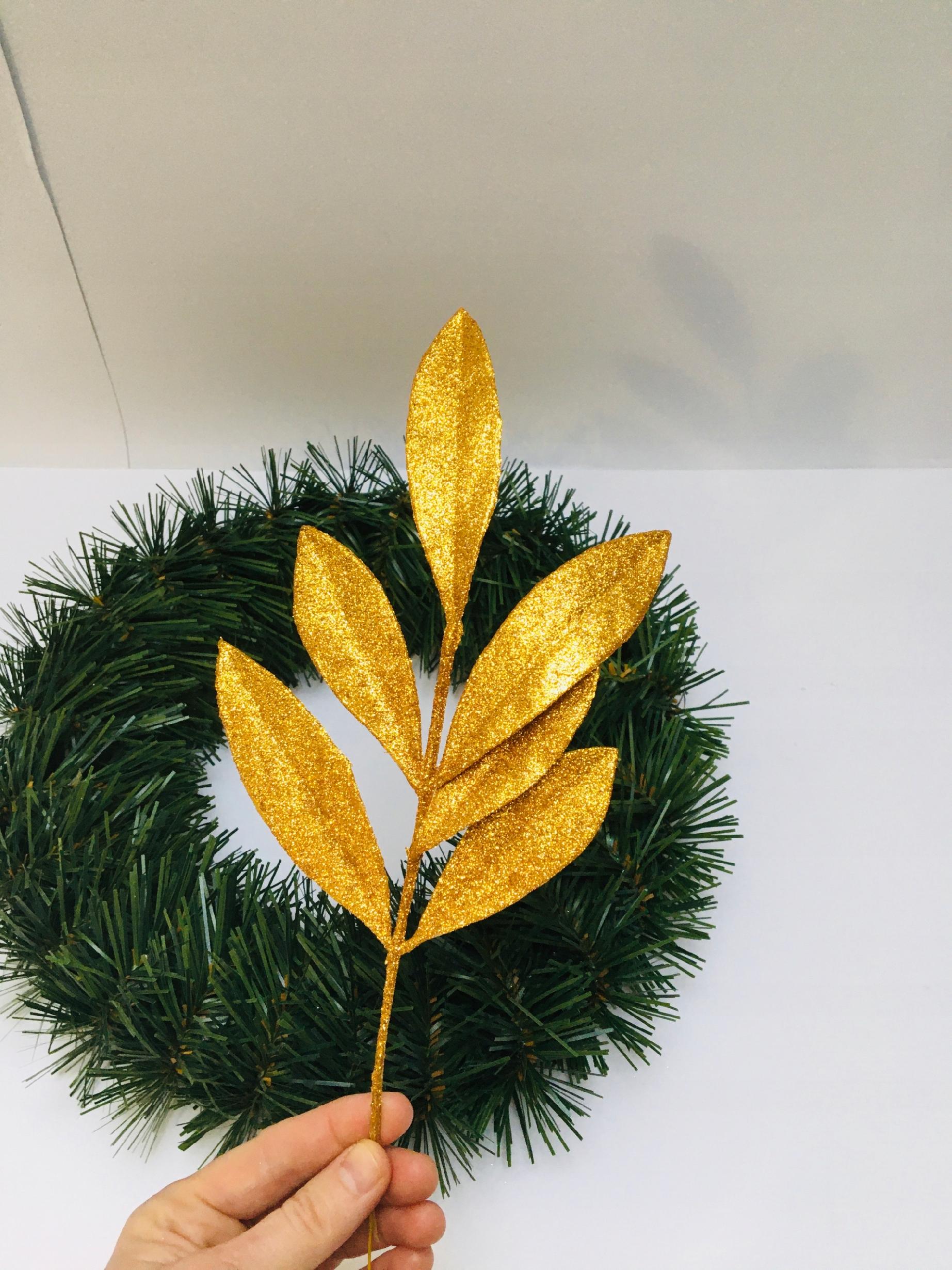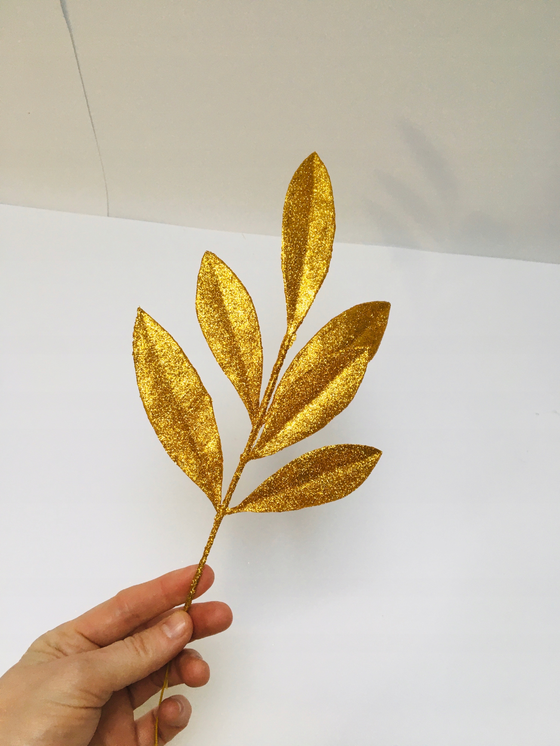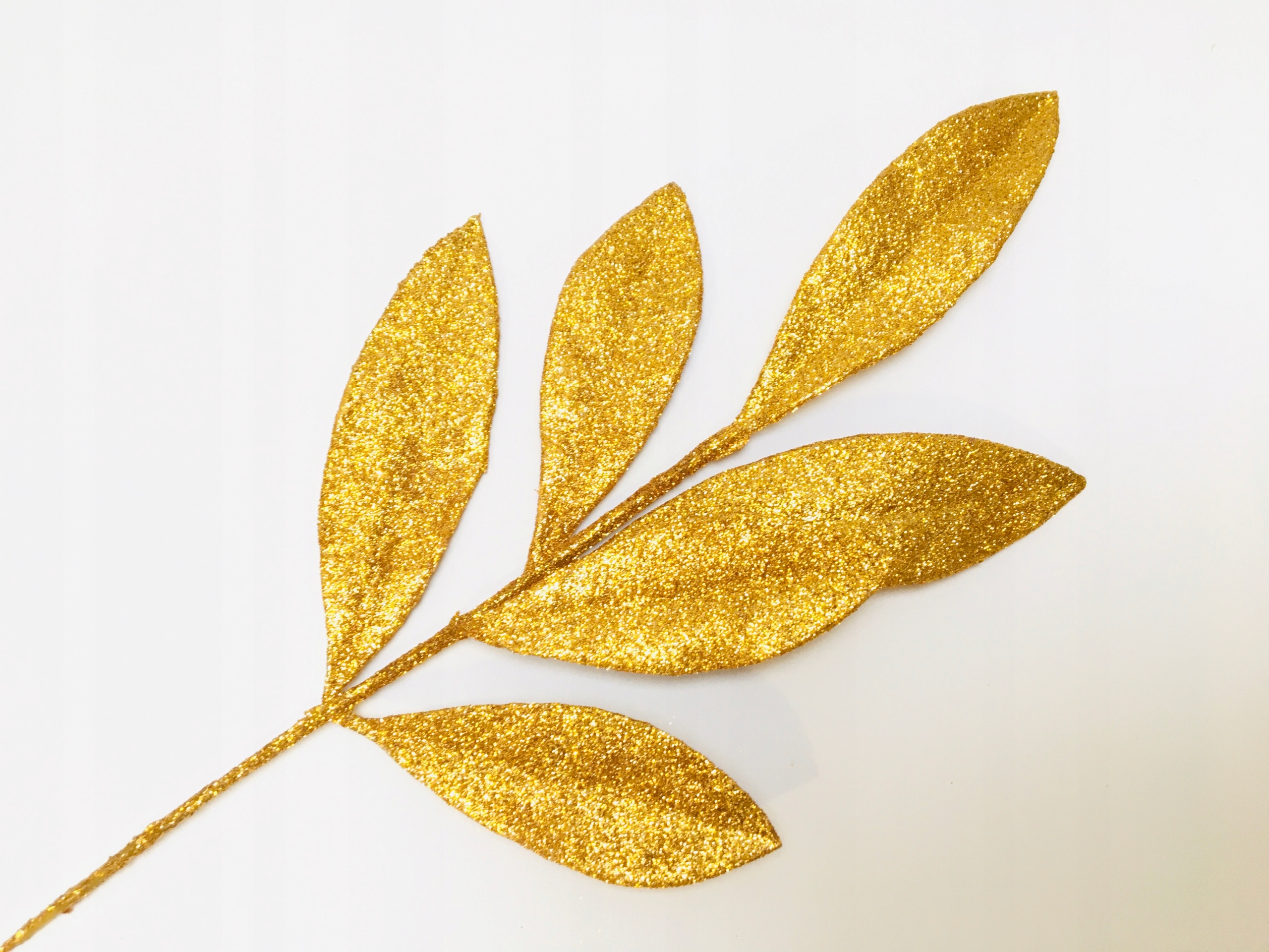 LIŚĆ SZTUCZNY brokatowy złoty GAŁĄZKA do dekorowania stroika święta choinka