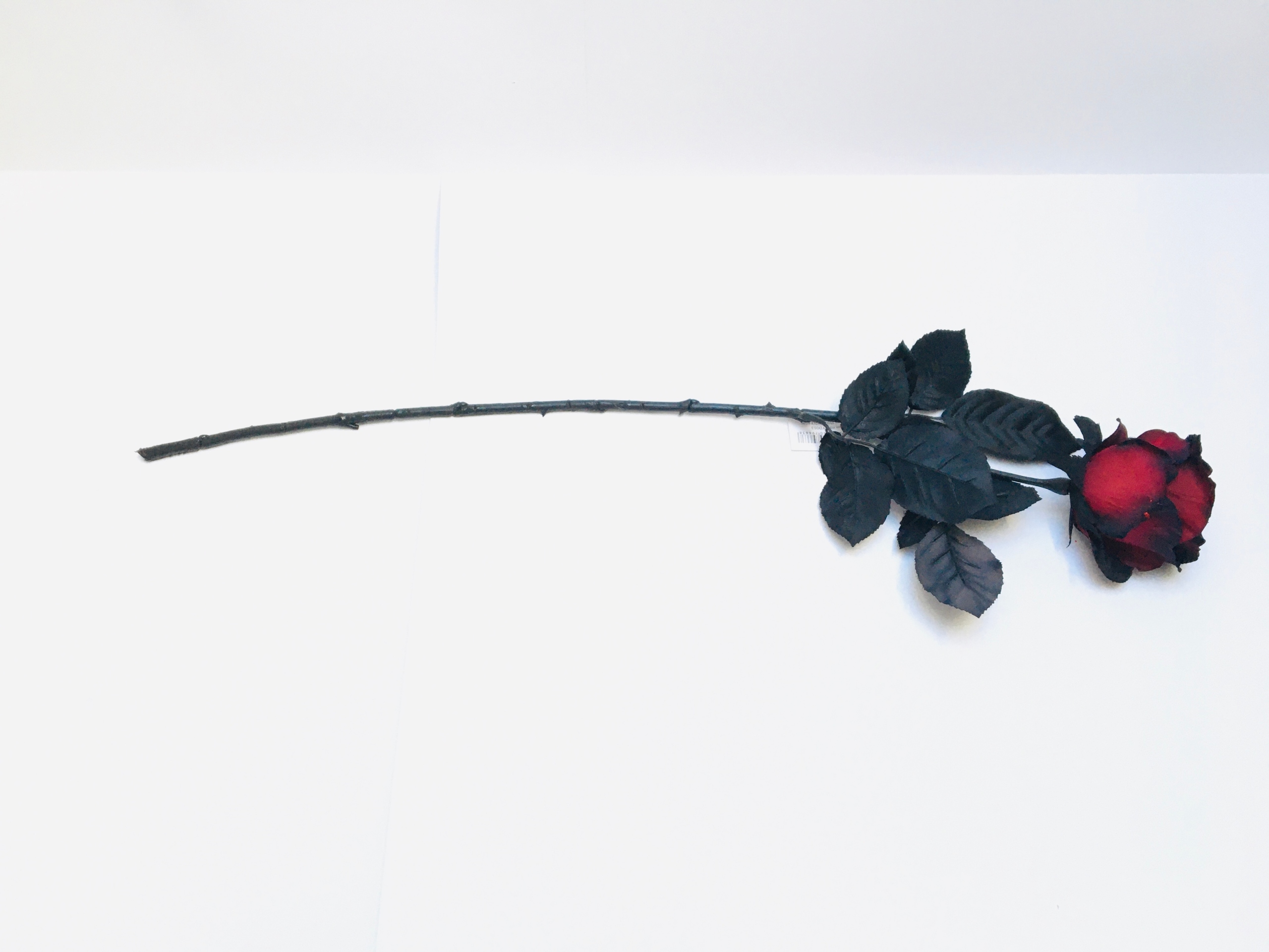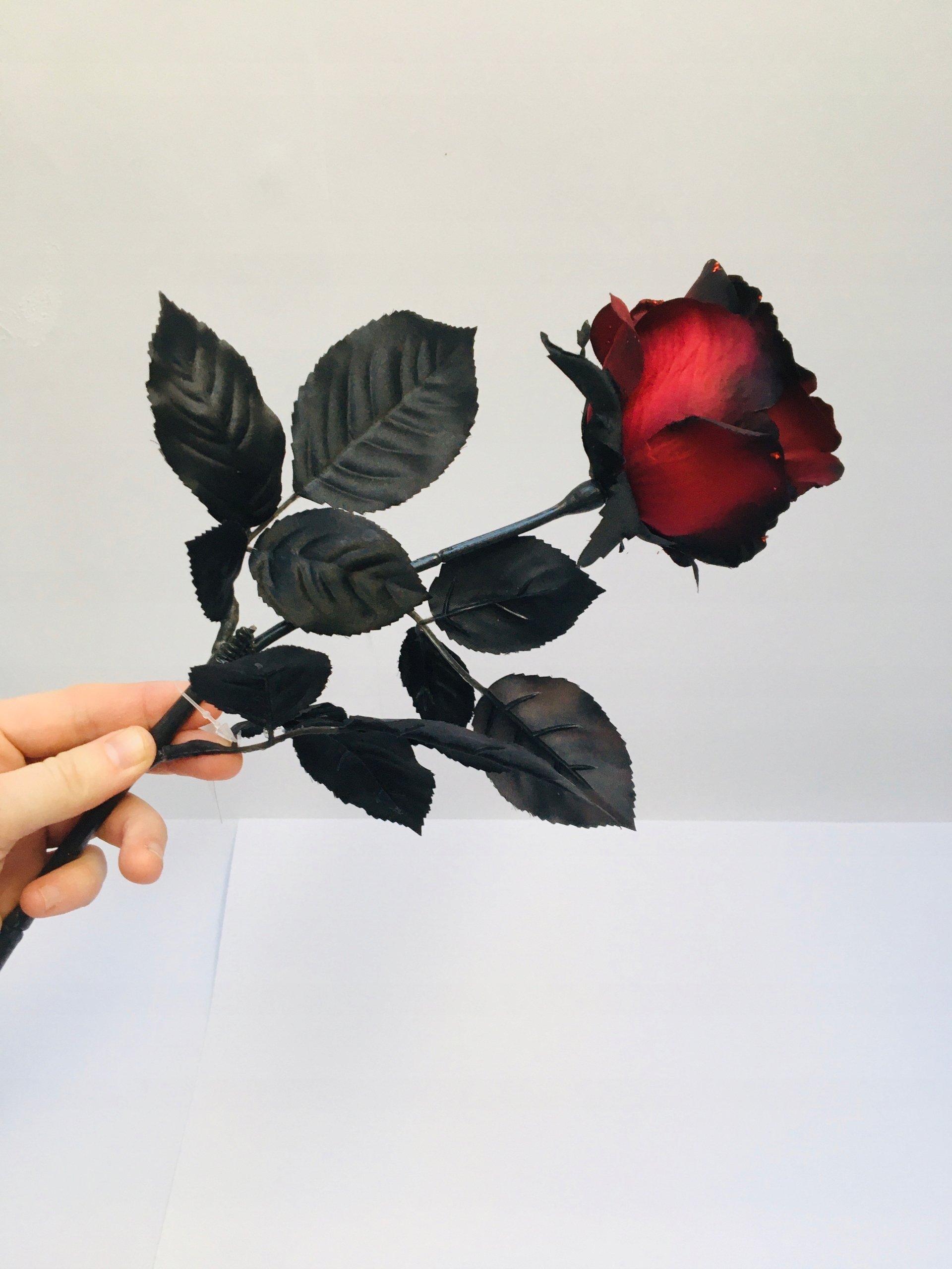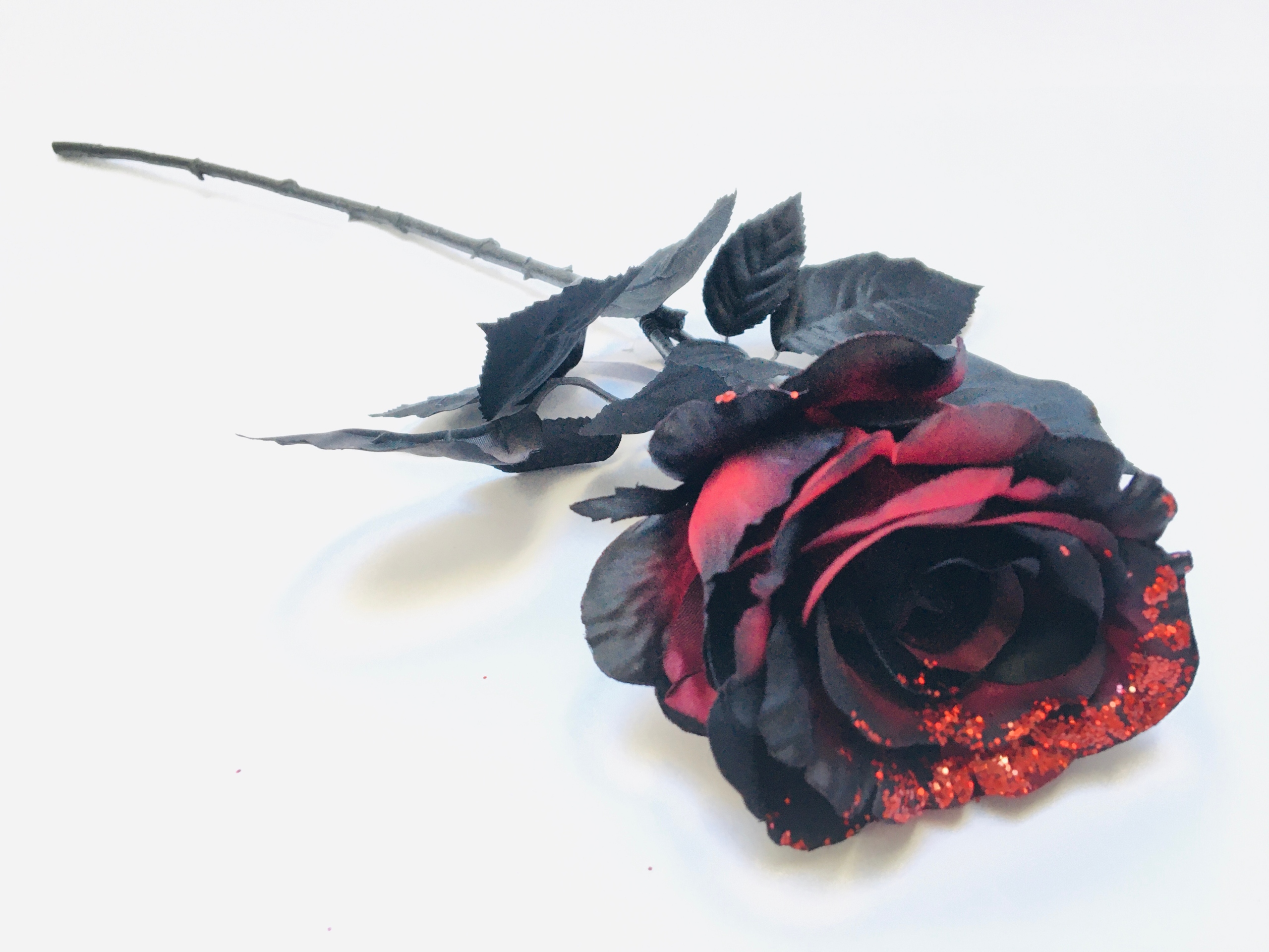 ŁODYGA RÓŻA Z BROKATEM czerwono czarna liść do flakonu wazonu święta 65cm