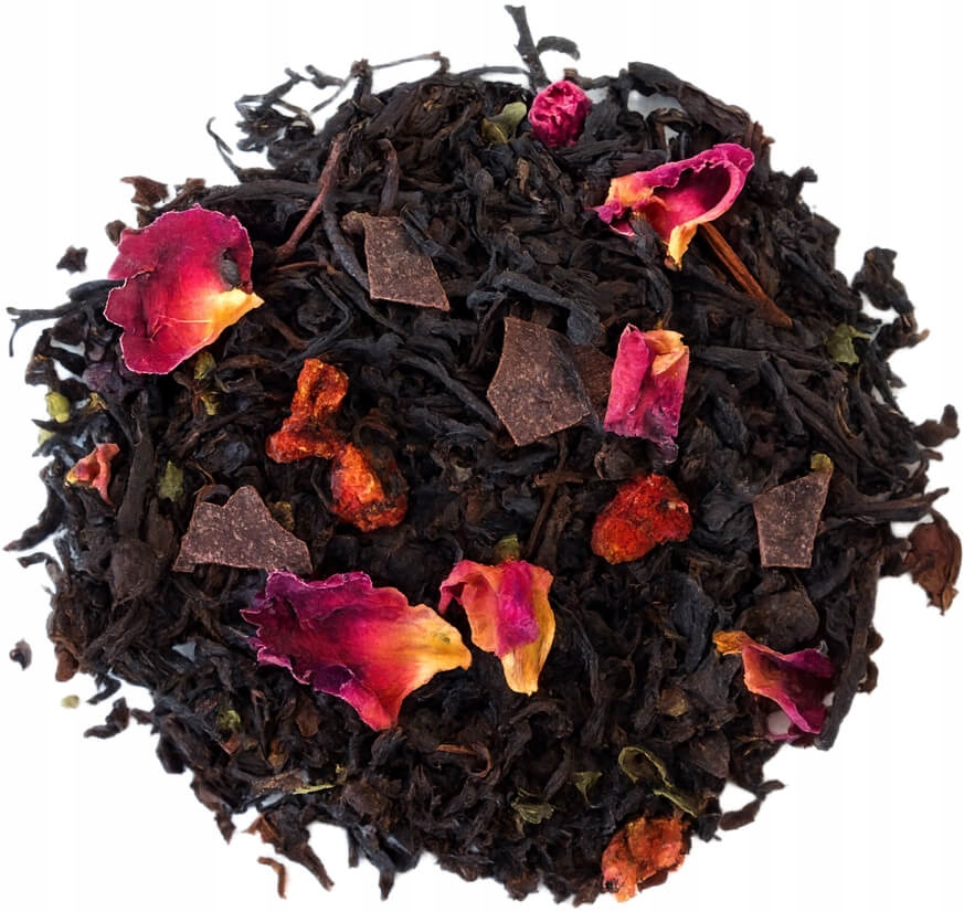 Herbata czarna CZEKOLADOWO MIĘTOWA sypana truskawki płatki róży mięta 100g - herbata liściasta sypana mieszanka napar susz