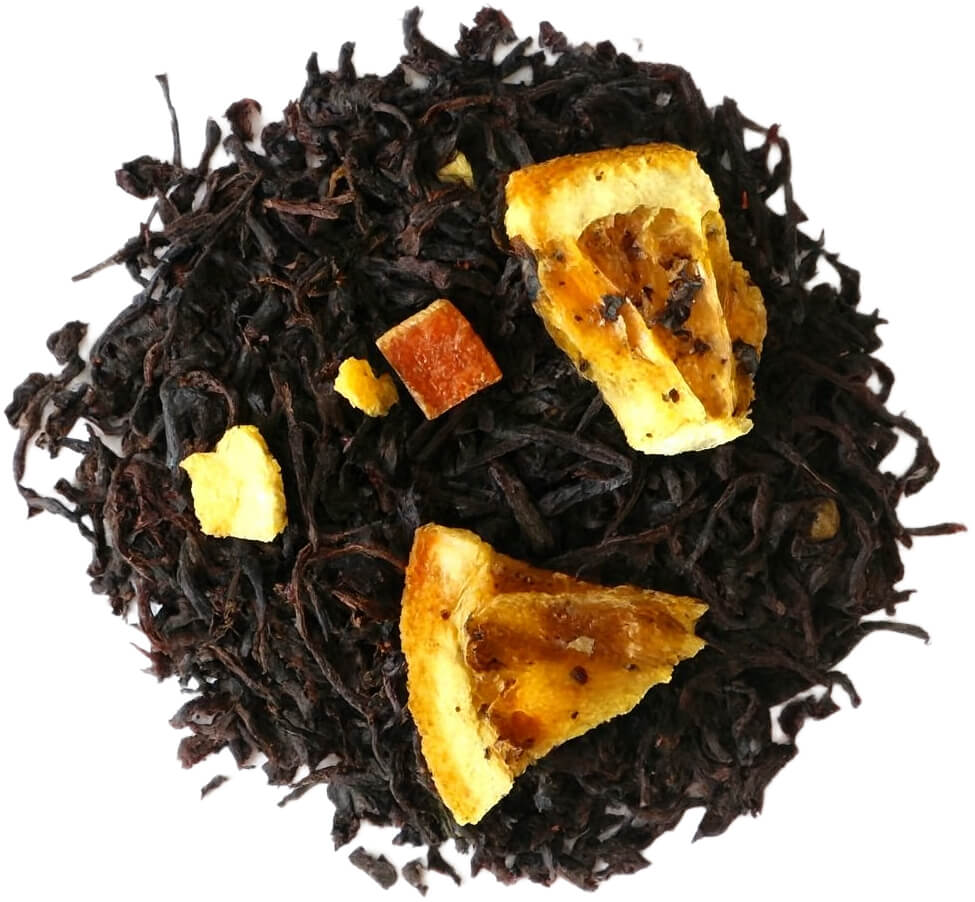 Orzeźwiająca i słodka kompozycja dla miłośników cytrusowych smaków. Czarna herbata wzbogacona ćwiartkami i skórką pomarańczy tworzy napar pełen świeżości i naturalnej słodyczy.