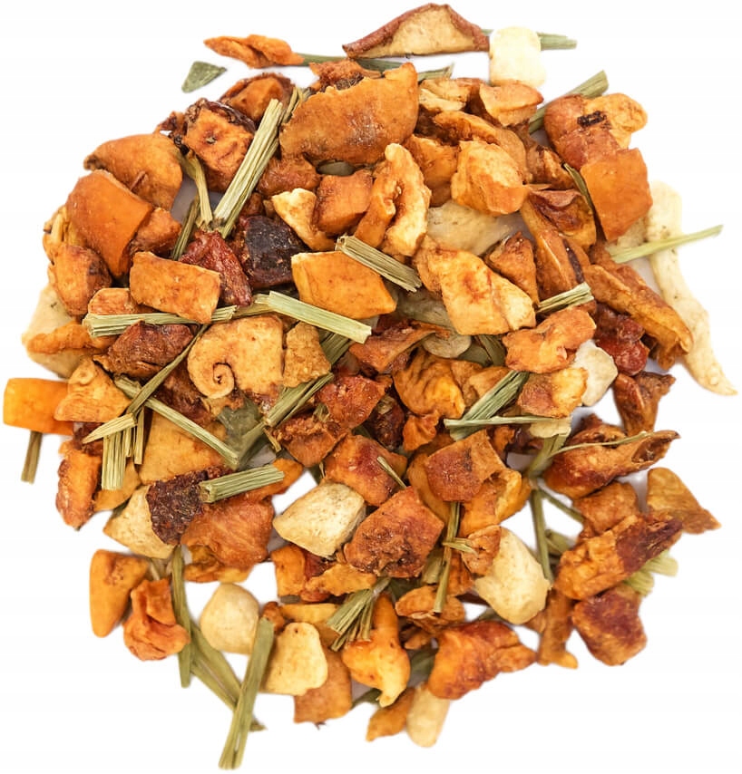 Słodka i aromatyczna mieszanka, która łączy soczyste kawałki jabłka z tropikalną nutą kandyzowanego ananasa oraz świeżością trawy cytrynowej. Idealna propozycja dla miłośników owocowych smaków z delikatnym cytrusowym akcentem.