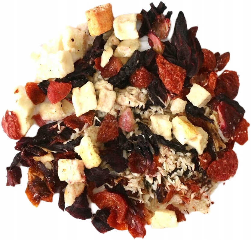 Egzotyczna, słodko-kwaśna mieszanka inspirowana klasycznym koktajlem Pina Colada. Połączenie owoców tropikalnych z kwiatowymi nutami hibiskusa i dzikiej róży, które przenosi na słoneczne plaże i wakacyjny relaks.