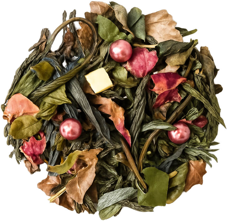 Delikatna biała i zielona herbata w tropikalnym wydaniu – soczysty ananas i kremowy aromat kokosa tworzą harmonijny duet, który przenosi myśli w stronę egzotycznych plaż. Subtelne płatki róży dodają całości elegancji i lekko kwiatowego aromatu.
