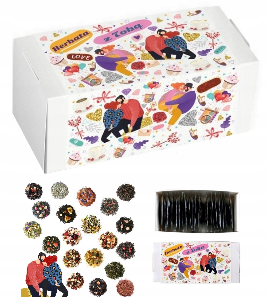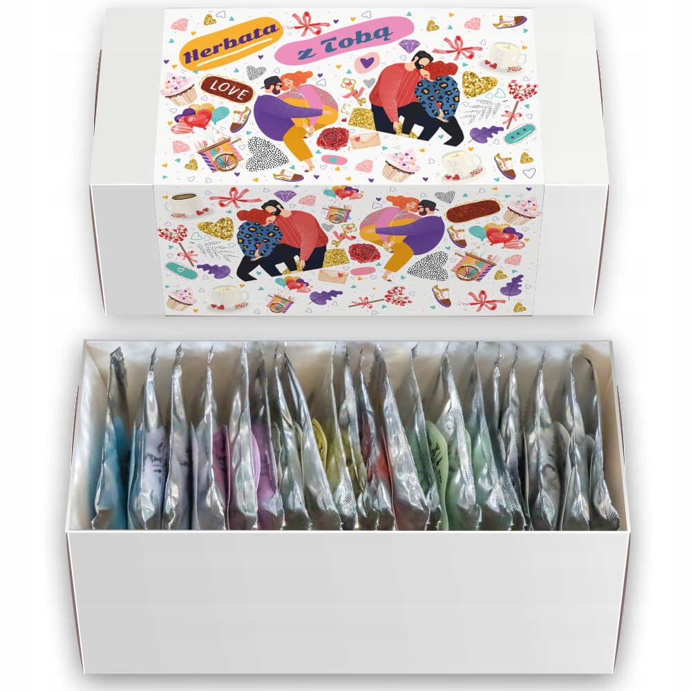 Zestaw prezentowy upominkowy "HERBATA Z TOBĄ" - herbaty premium 20 smaków - prezent upominek na walentynki dla chłopaka dziewczyny niej niego żony męża kobiety faceta mężczyzny narzeczonej