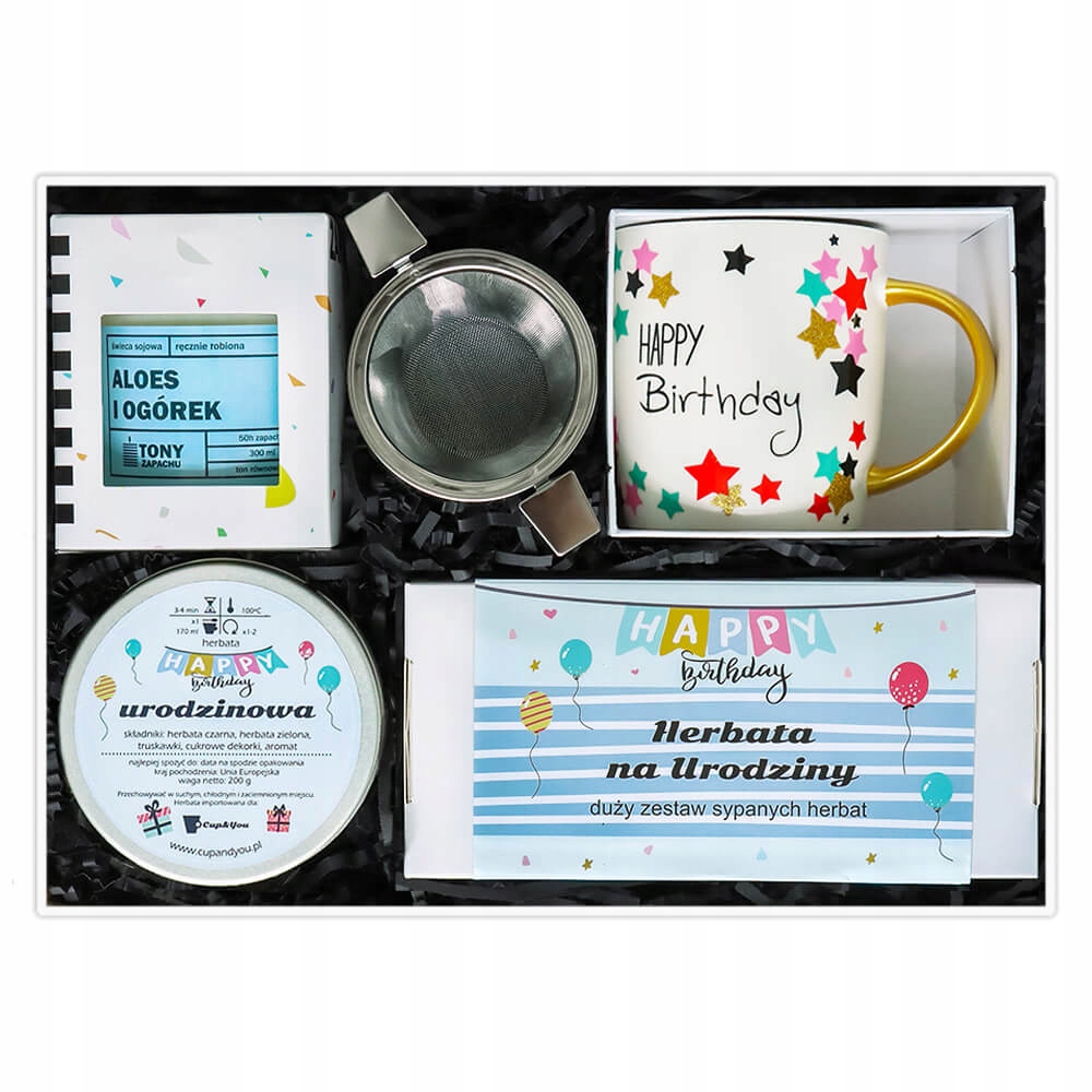 Najlepszy URODZINOWY GIFTBOX z herbatą smakową mix i ozdobnym kubkiem gift