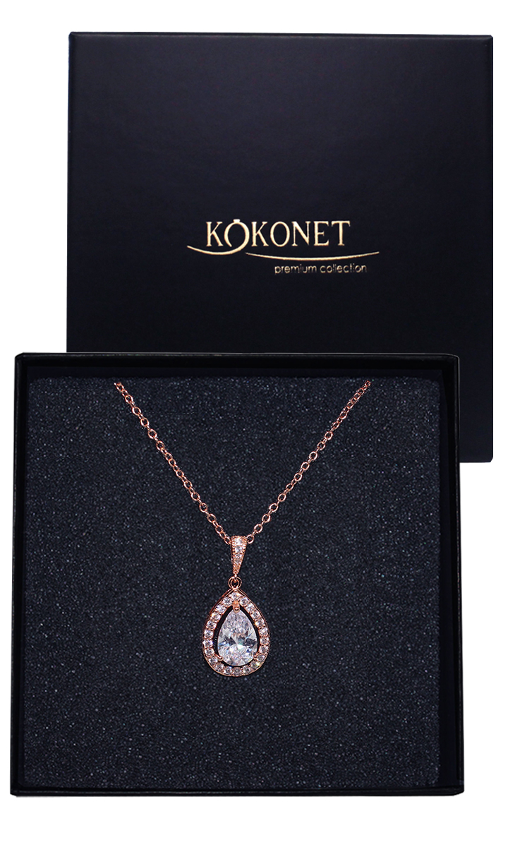 NASZYJNIK łezka MIGDAŁ ślubny ażurowa RÓŻOWE ZŁOTO na ślub wesele