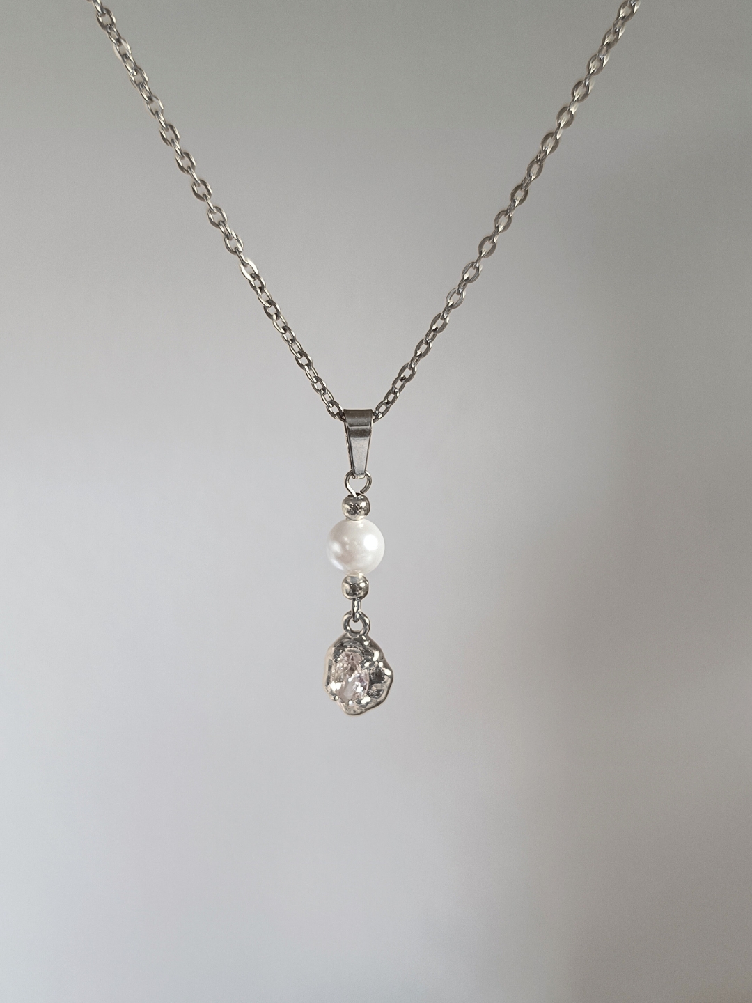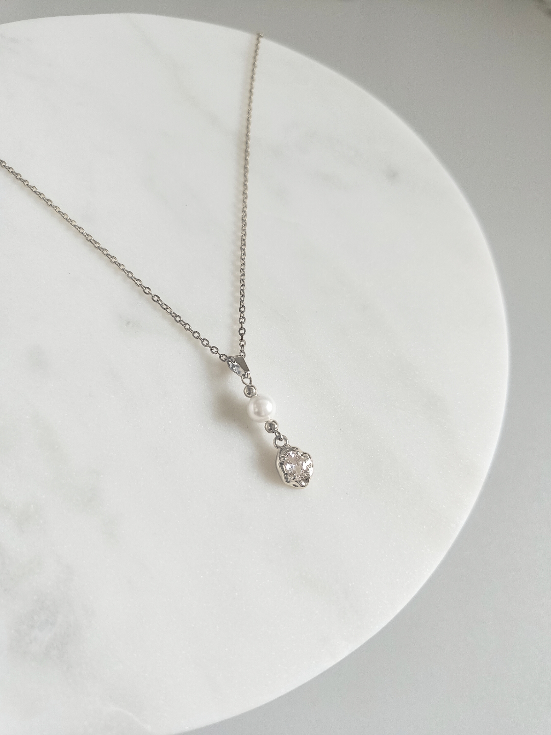 Naszyjnik perłowy ślubny minimalistyczny MODNY elegancki srebrny VINTAGE
