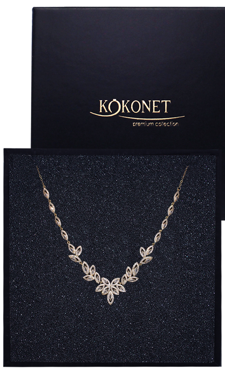 Naszyjnik ślubny kolia złota listki kryształki na wesele pozłacana w pudełku prezent