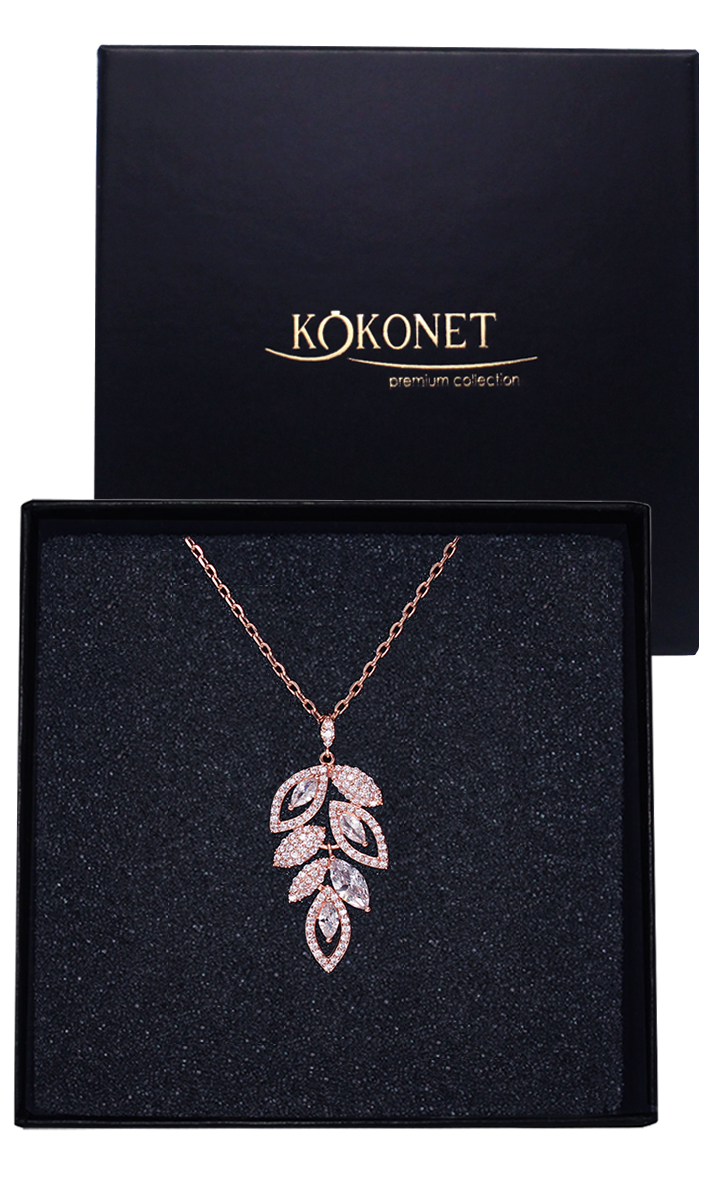 Naszyjnik ślubny rose gold z listkiem elegancki na ślub