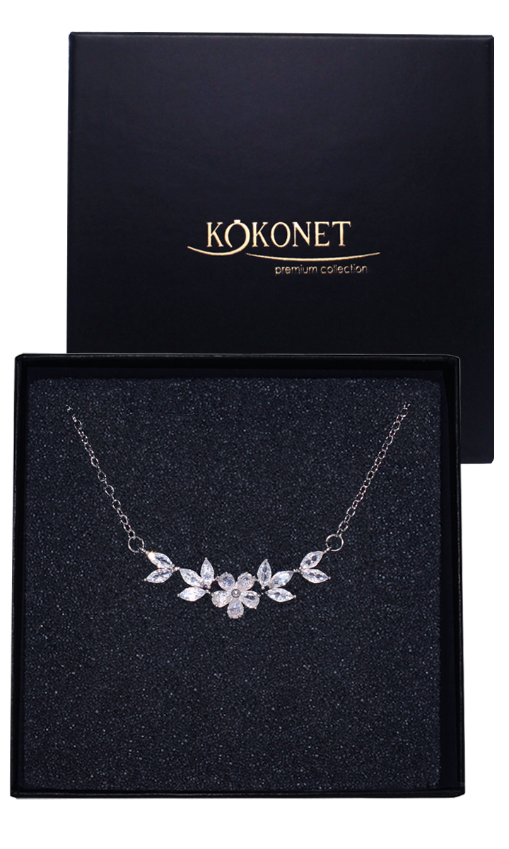 Naszyjnik ślubny Srebrny na ślub kryształki Panny MŁODEJ z kwiatem kwiatami