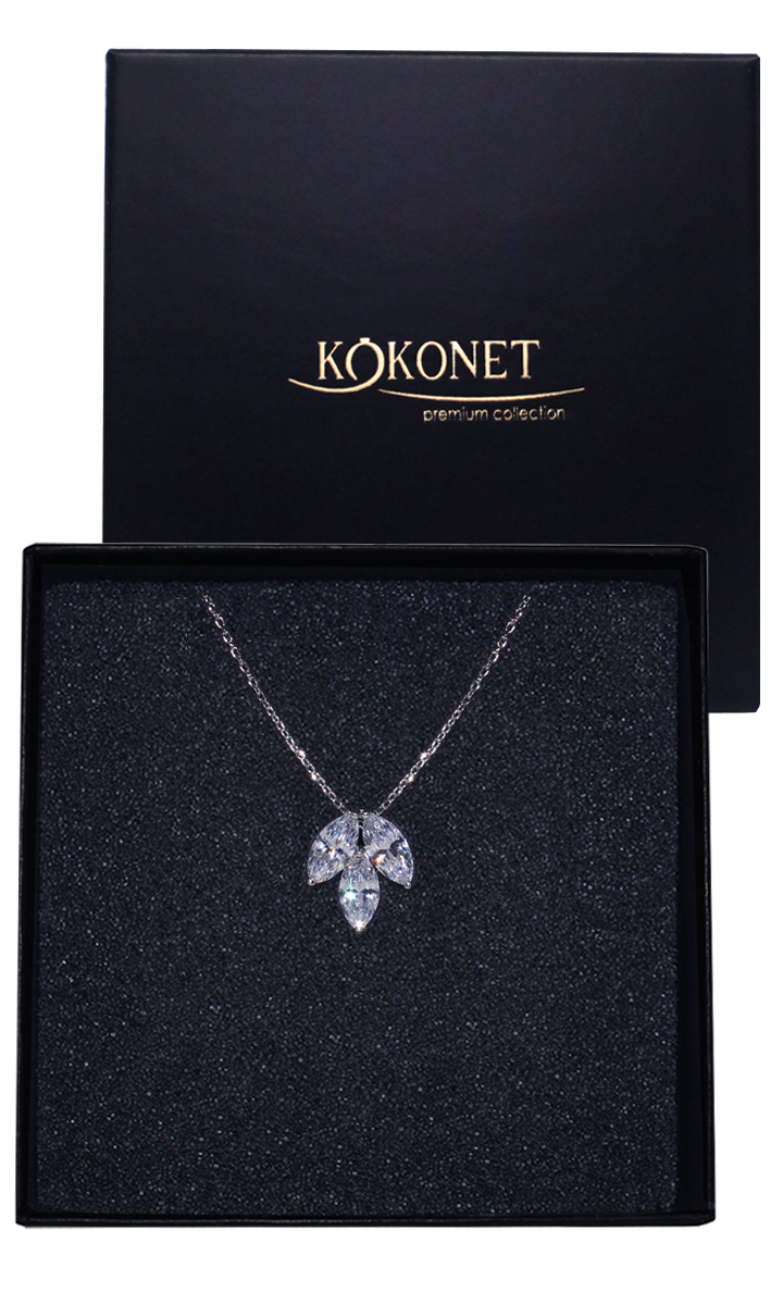 Naszyjnik z cyrkoniami liść srebrny ślubna biżuteria elegancka w pudełku