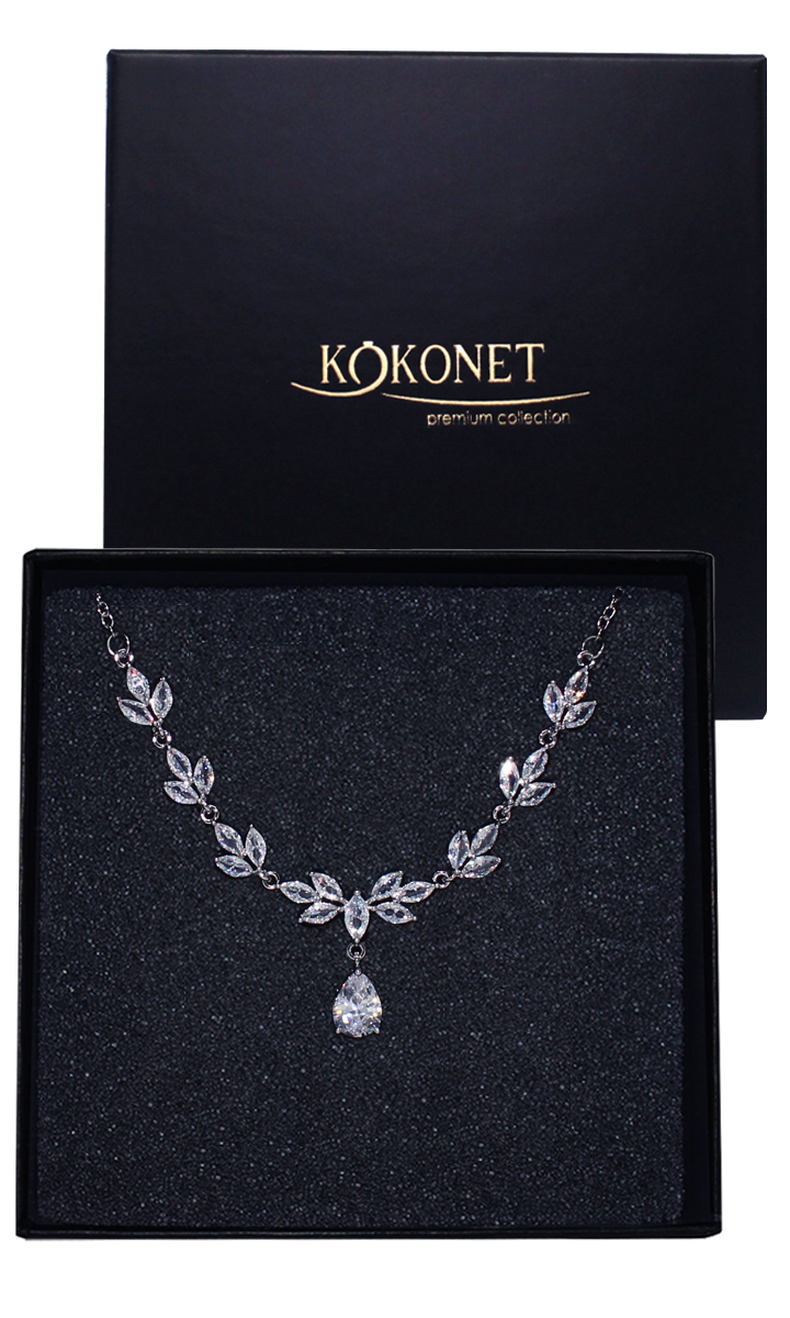 Naszyjnik z cyrkoniami regulowany do dekoltu V srebrny elegancki ślubny