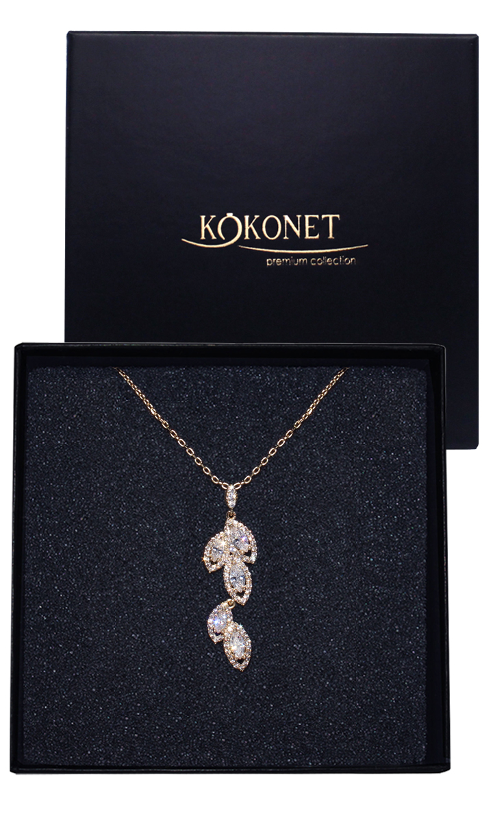 Naszyjnik z listkami i cyrkoniami pozłacany BOHO glam do sukni ślubnej