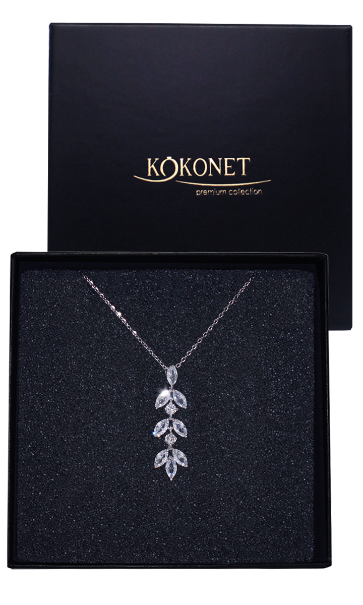Naszyjnik z wiszącymi listkami ślubny srebrny klasyczny boho glam zawieszka