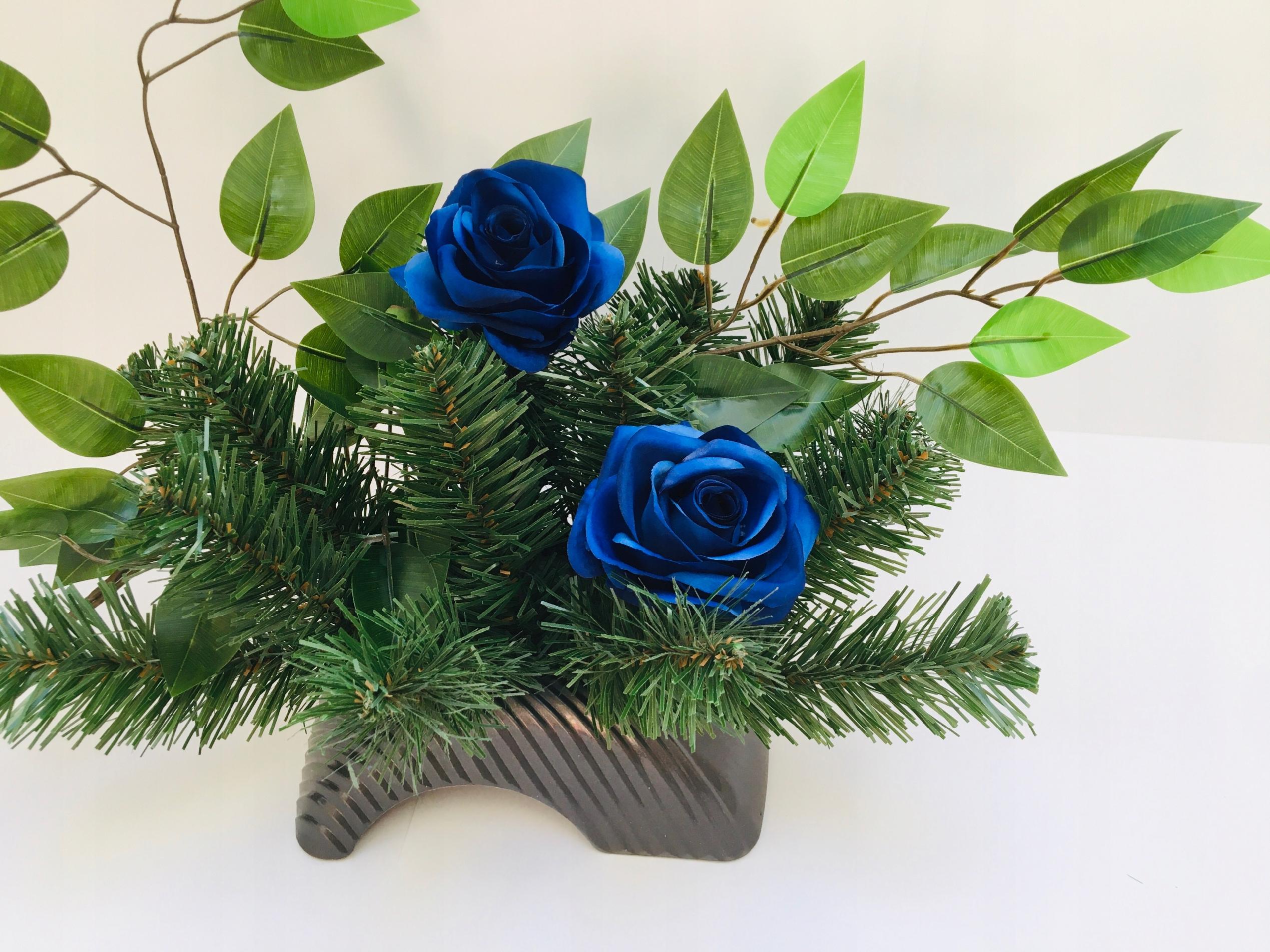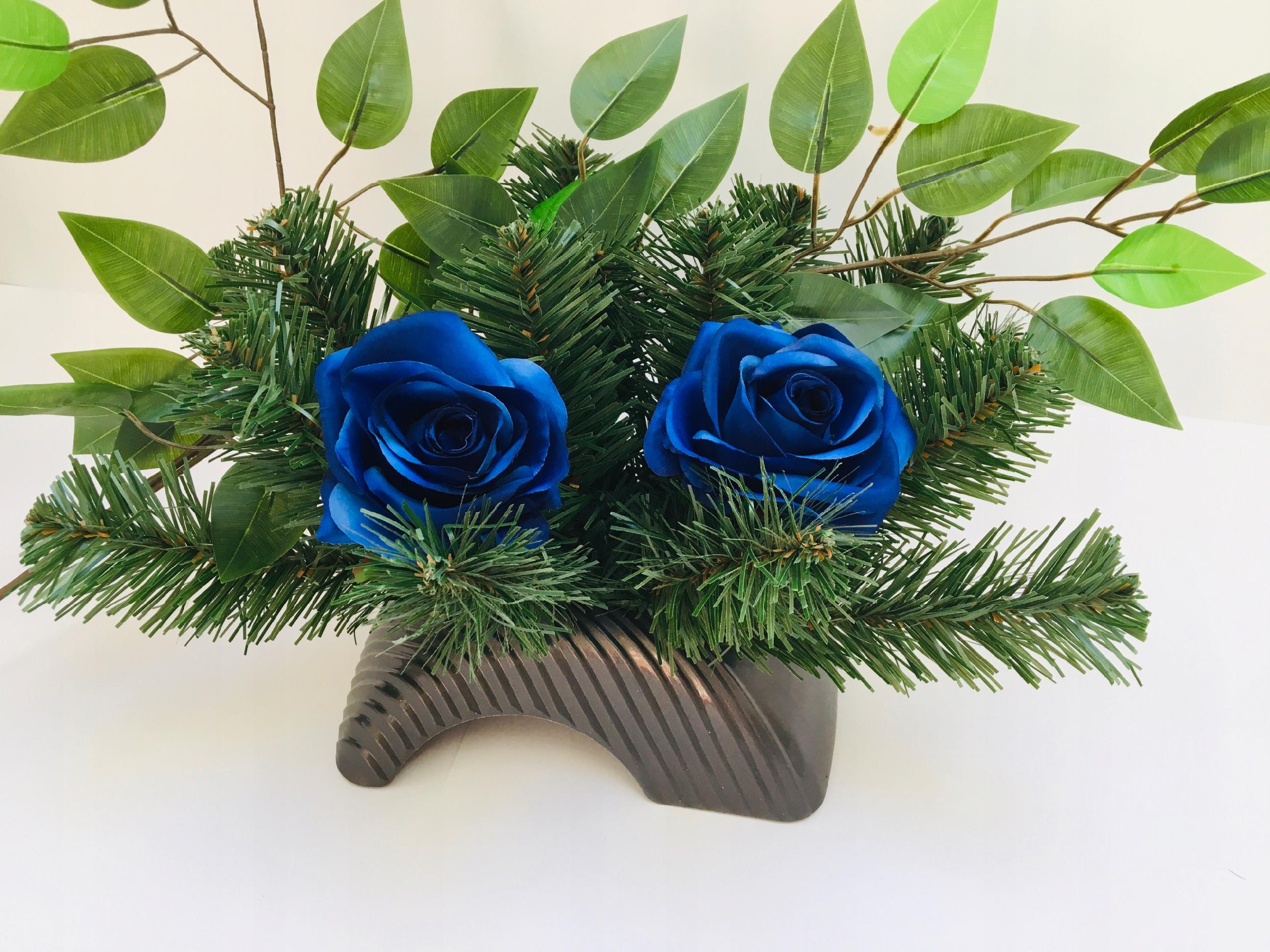 NIEBIESKA RÓŻA SZTUCZNA do kompozycji stroika święta zmarłych bukiet grób