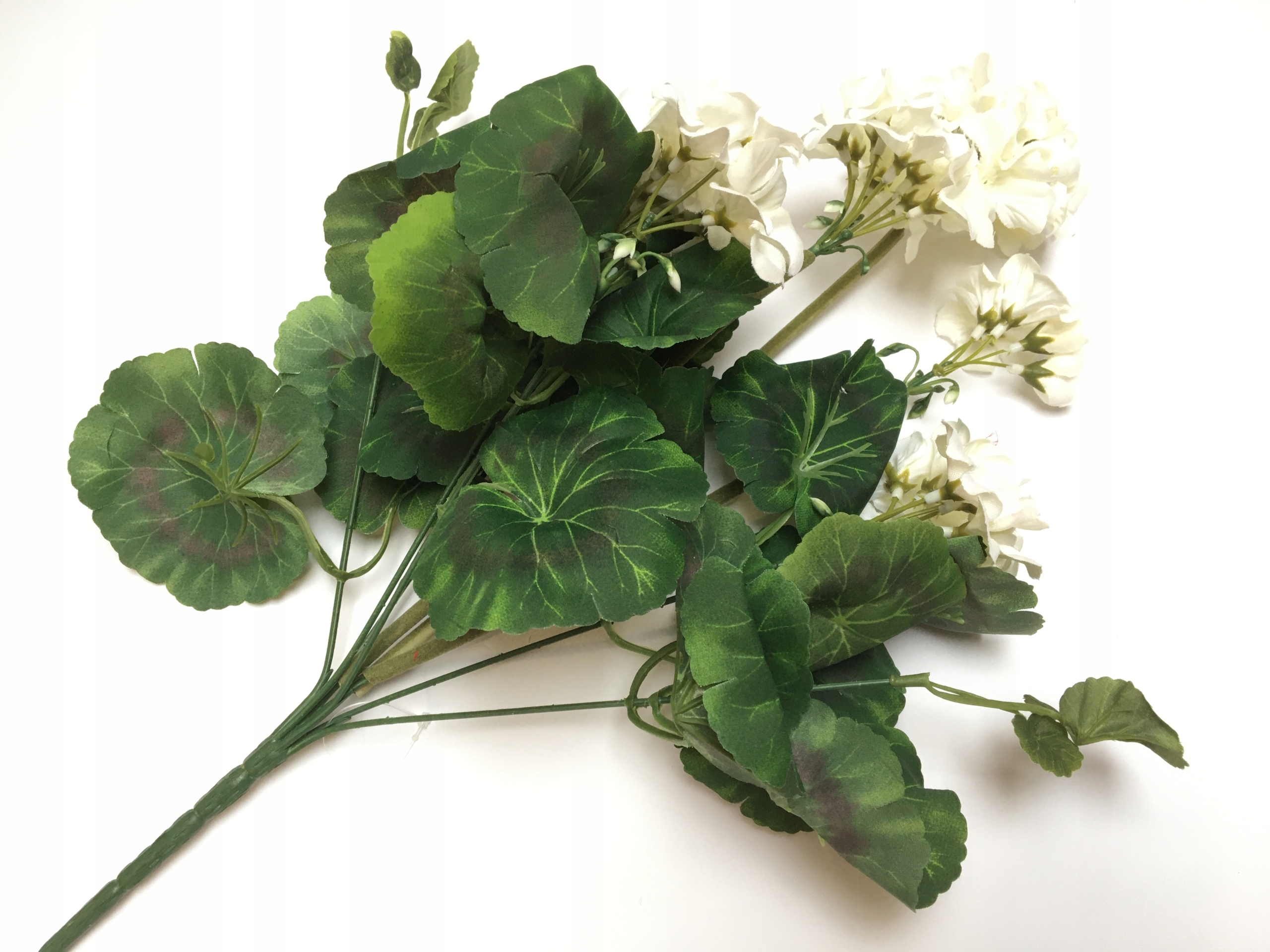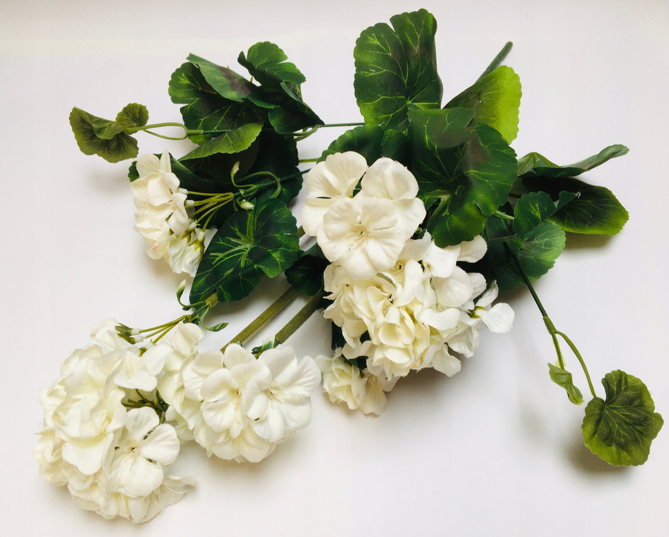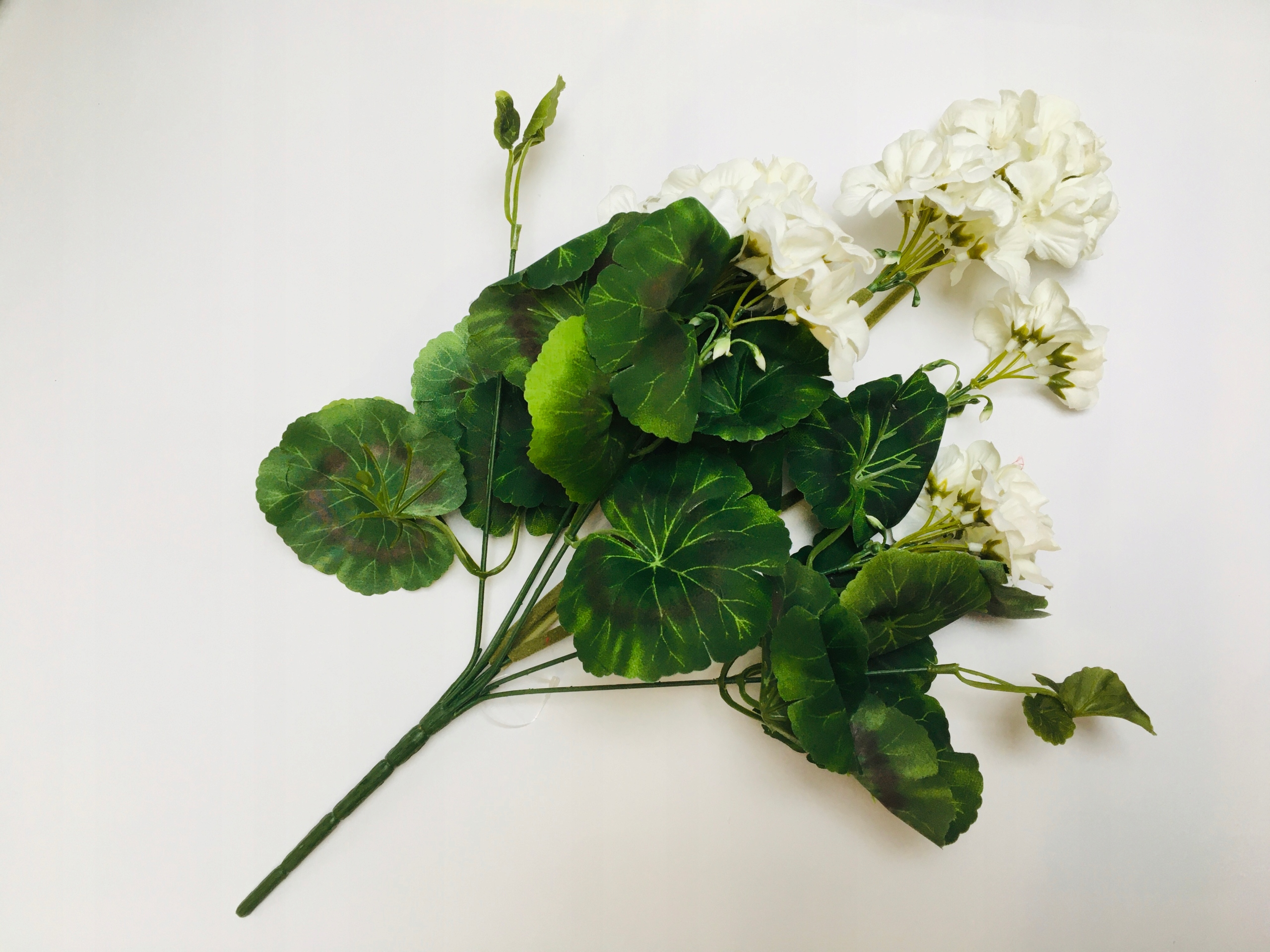 PELARGONIA sztuczna białe kwiaty DO DONICZKI wazonu wiosenne BUKIET stroik
