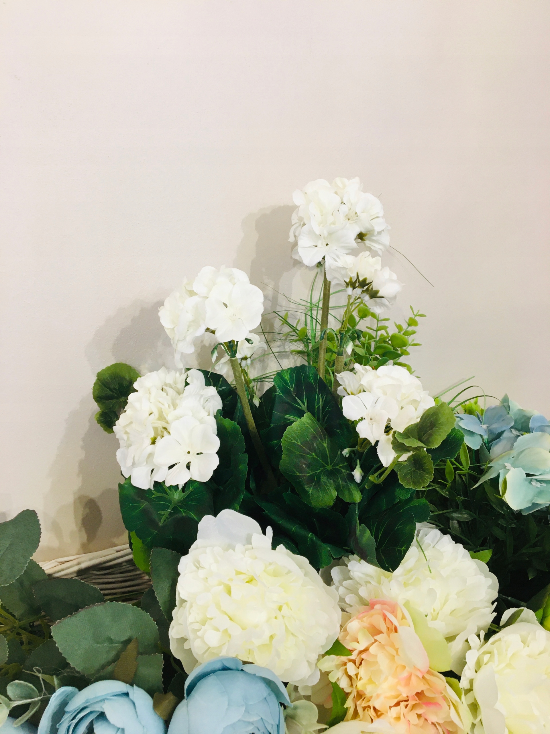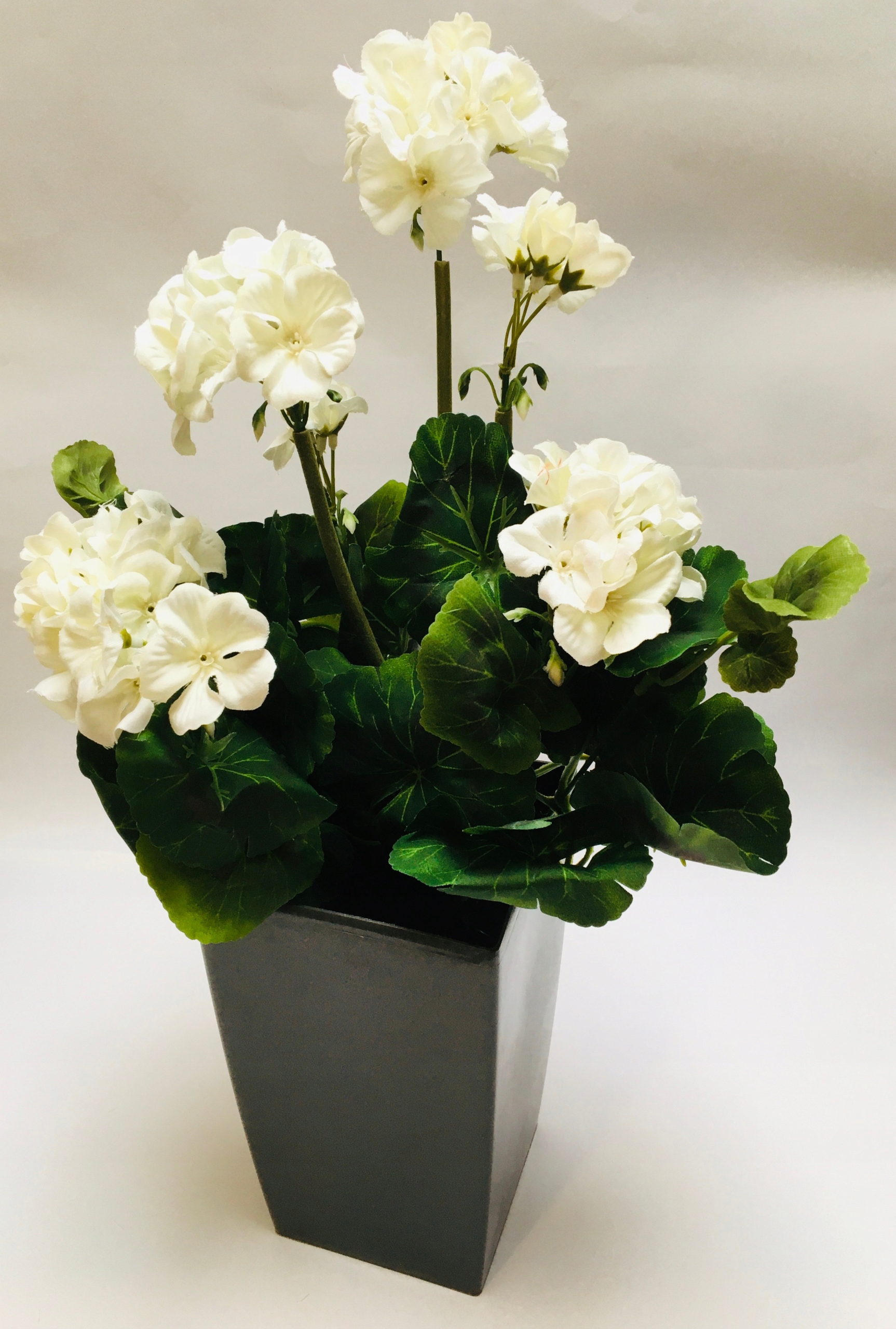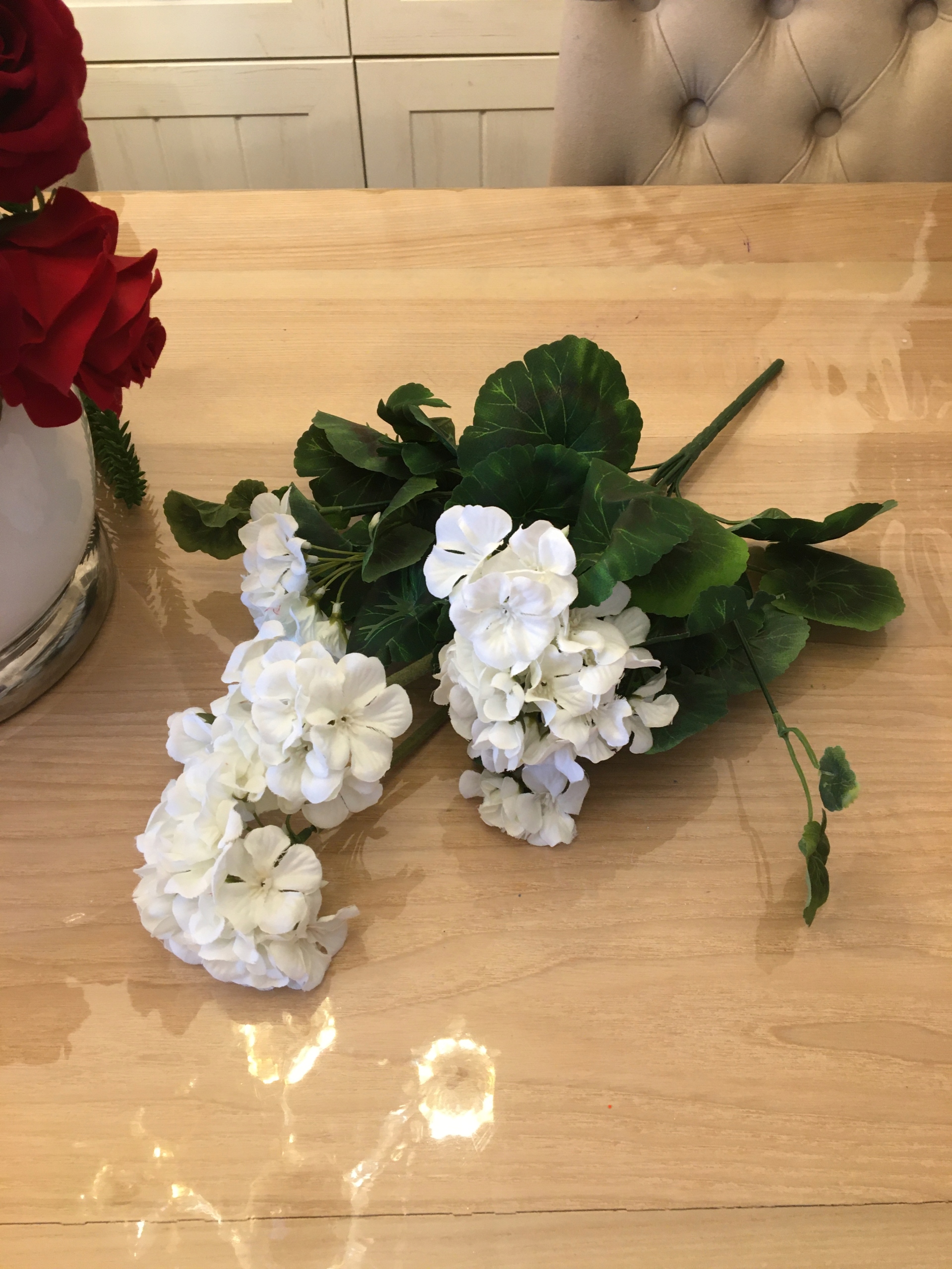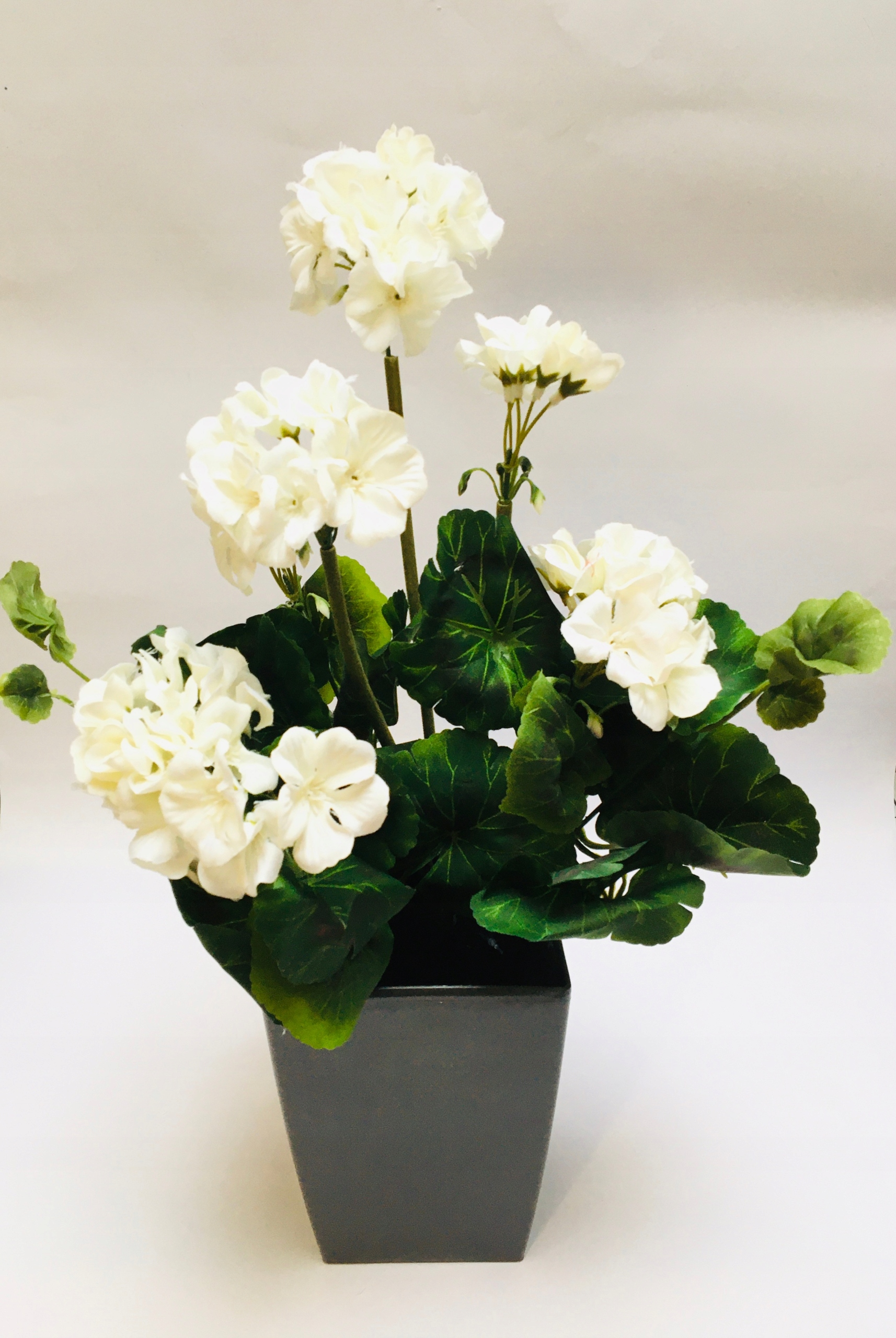 PELARGONIA sztuczna białe kwiaty DO DONICZKI wazonu wiosenne BUKIET stroik