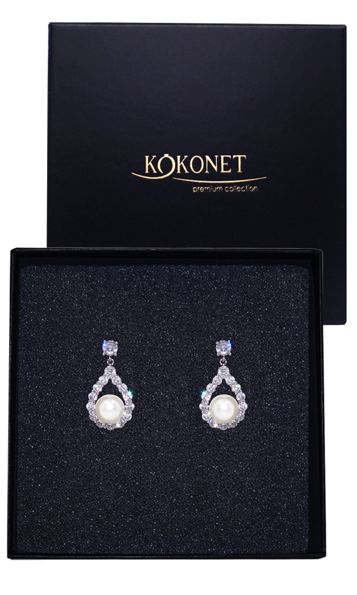 PERŁOWE kolczyki wiszące eleganckie cyrkonie perły sztyft błyszczące małe