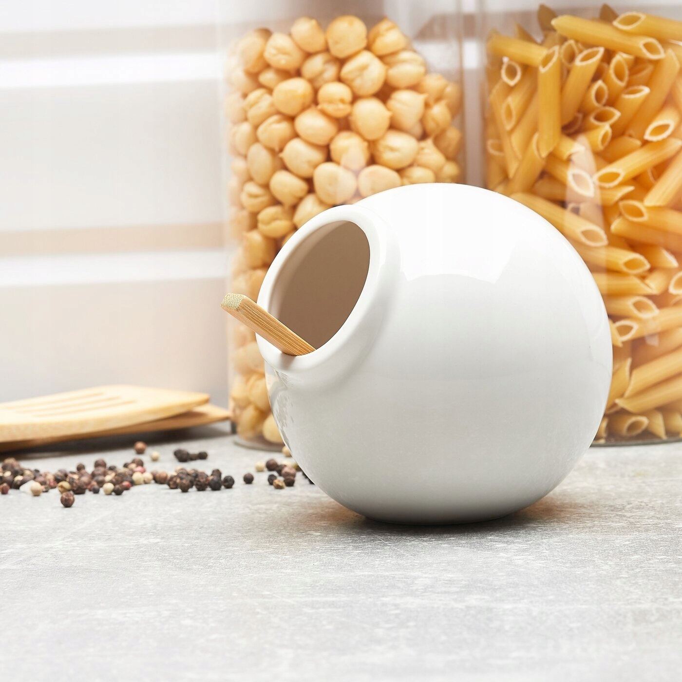 Pojemnik kuchenny z drewnianą łyżeczką na sól przyprawy cukier herbatę kula
