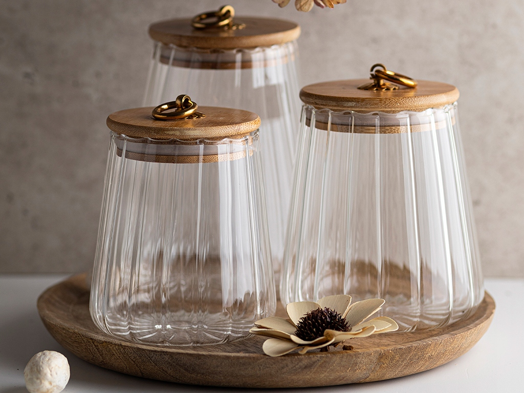 POJEMNIK SZKLANY dekoracyjny kuchenny 1 L ozdobny na jedzenie cukier sól