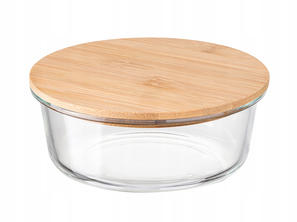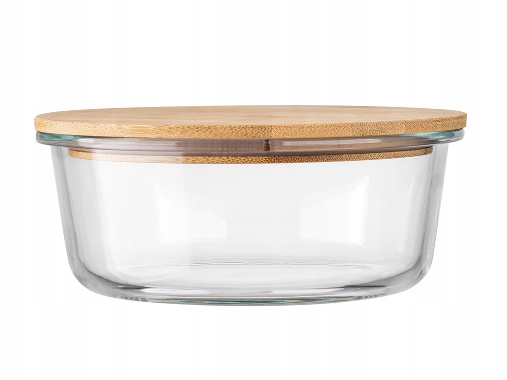 POJEMNIK SZKLANY okrągły z bambusową pokrywką 970ml na jedzenie owoce sery