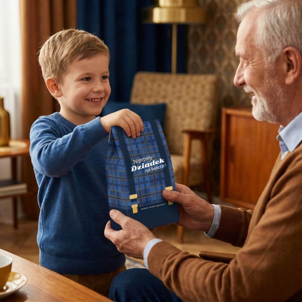 Ta propozycja okaże się idealna na imieniny, urodziny, Dzień Dziadka czy po prostu bez okazji. Podobno rodzice są od kochania, a dziadkowie od rozpieszczania — a jakby tak zamienić role na jeden dzień i sprawić Dziadkowi smaczną radość? W końcu herbata to strzał w dziesiątkę jeśli chodzi o nietuzinkowy prezent, bez względu na porę roku.
