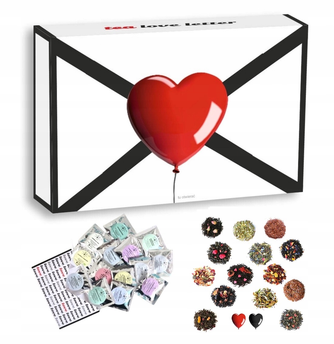 Zestaw prezentowy upominkowy "TEA LOVE MESSAGE" - 14 smaków herbat sypanych - prezent upominek na walentynki dla chłopaka dziewczyny niej niego żony męża kobiety faceta mężczyzny