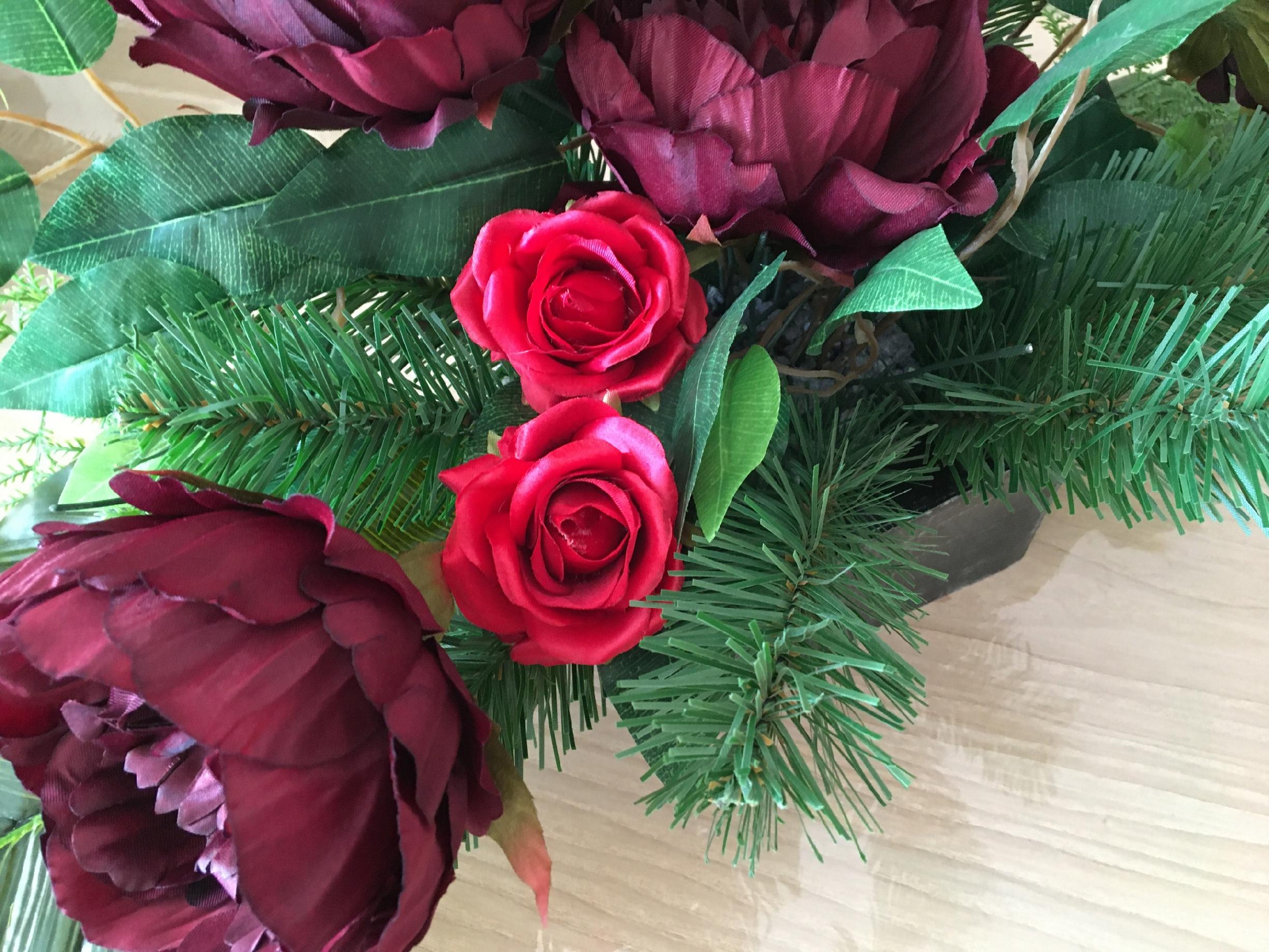 RÓŻA MAŁA sztuczna czerwona na stroik wiązankę 6x