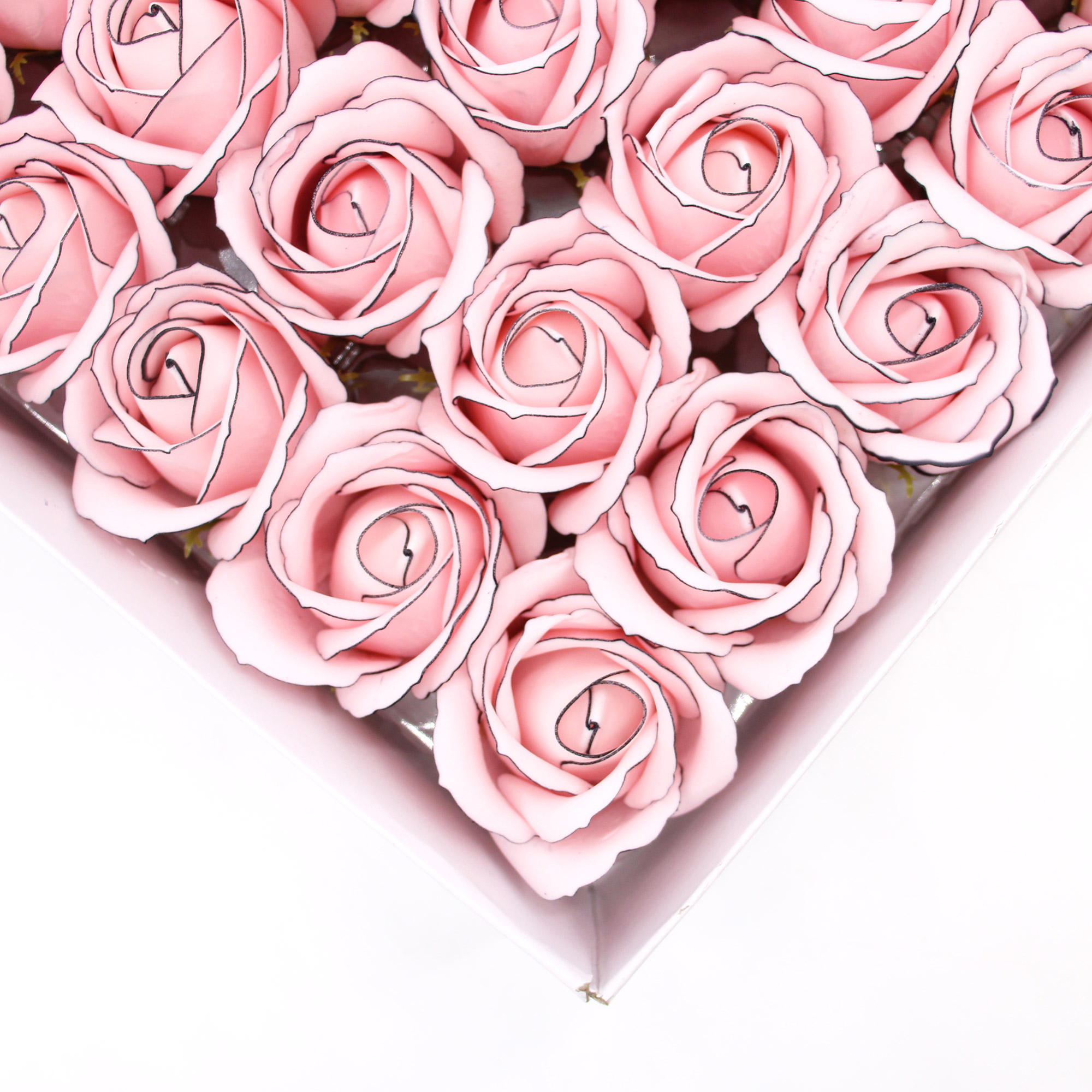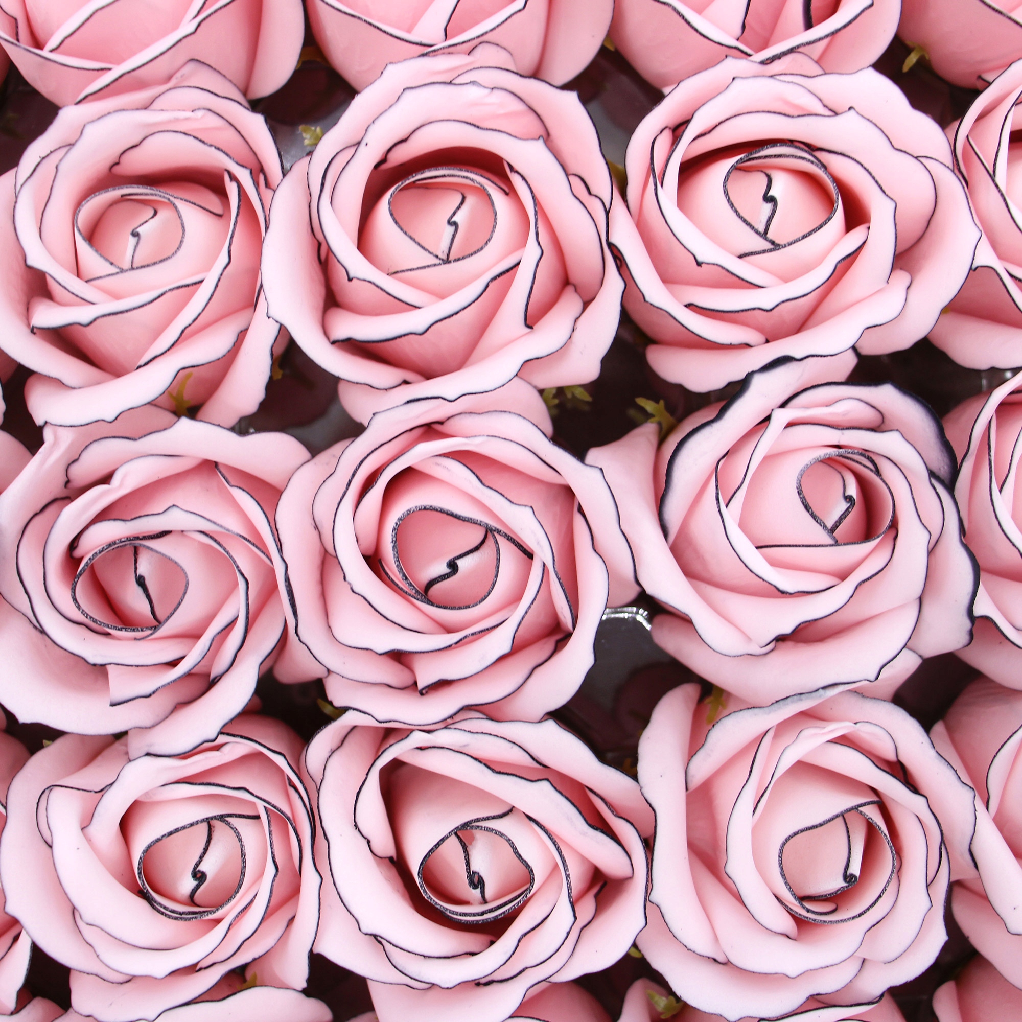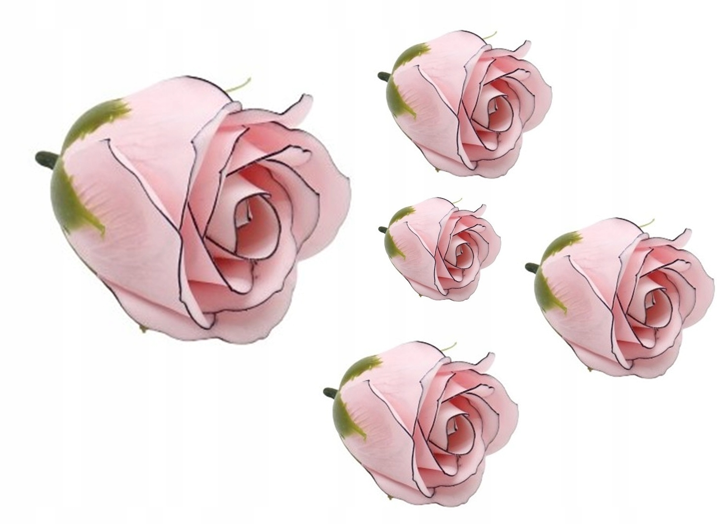 RÓŻA RÓŻOWA Z CZARNĄ OBWÓDKĄ 5szt kwiaty mydlane na bukiet stroik prezent