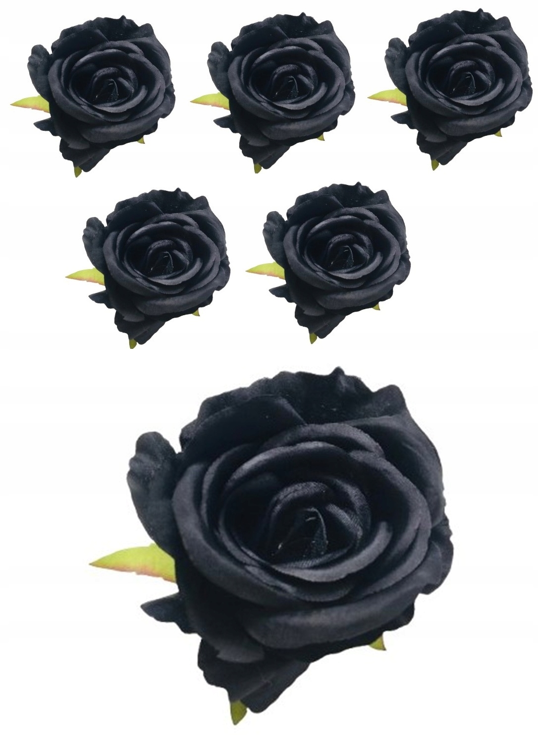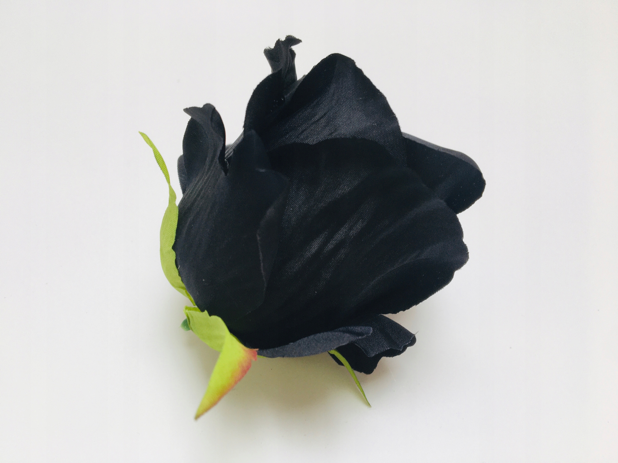 Róża sztuczna wyrobowa do wiązanek główka pąk kwiaty duża CZARNA 6szt