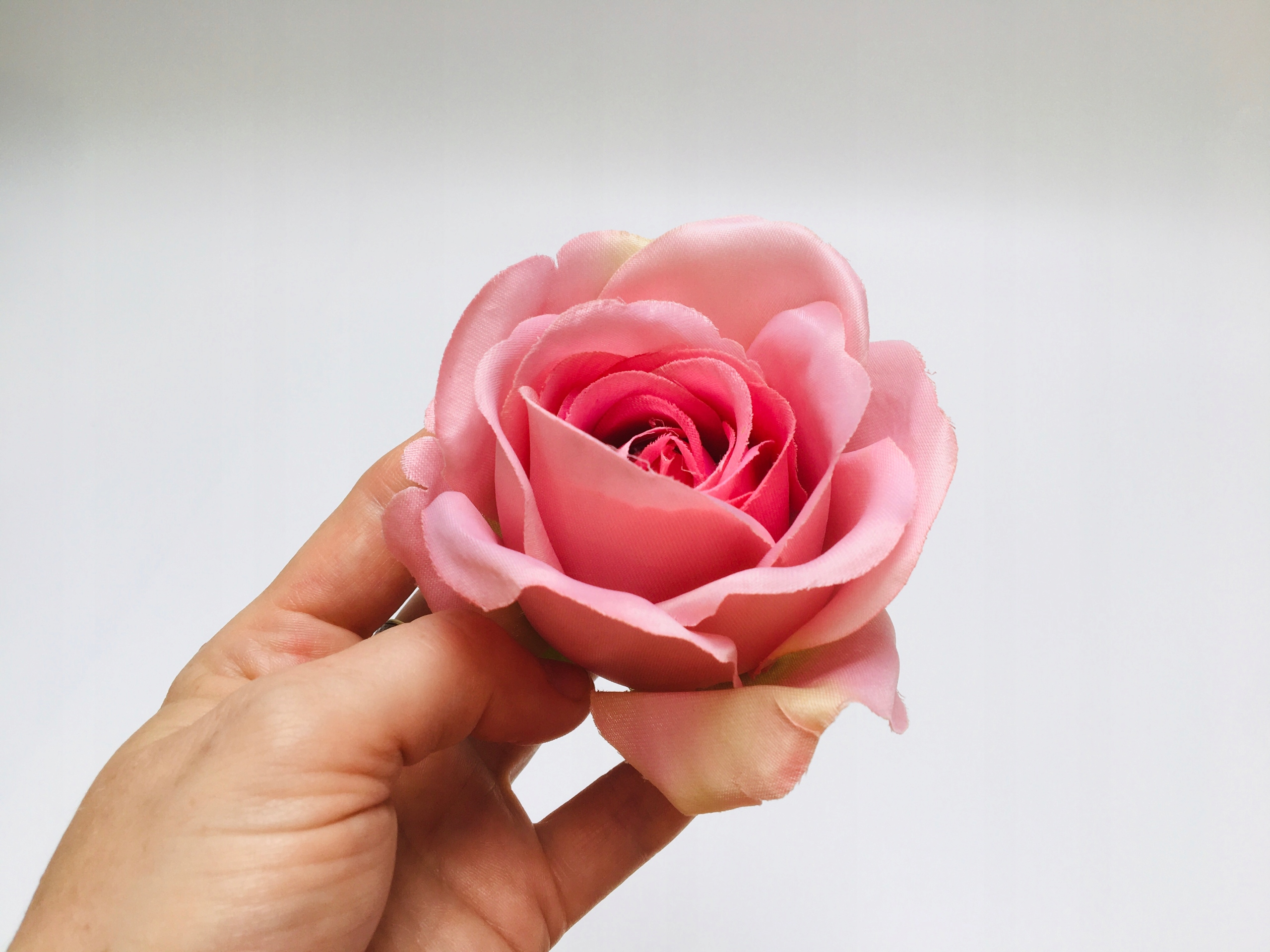 Róża sztuczna wyrobowa do wiązanek główka pąk kwiaty duża różowa stroika
