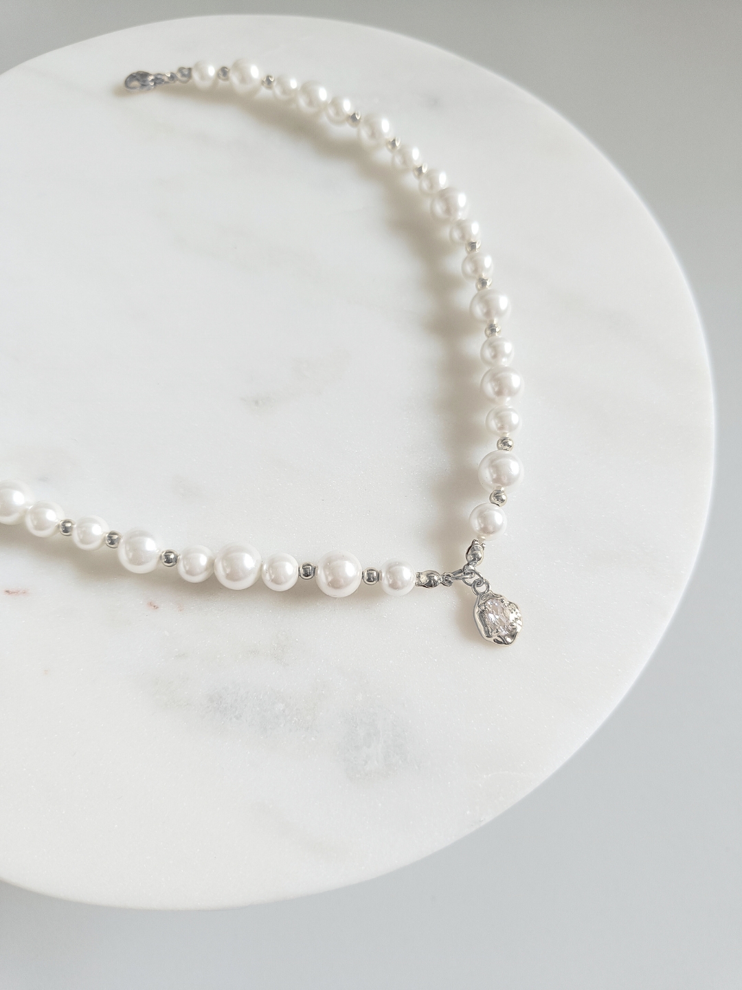 Srebrna KOLIA perłowa perły elegancki naszyjnik robiony vintage BOHO