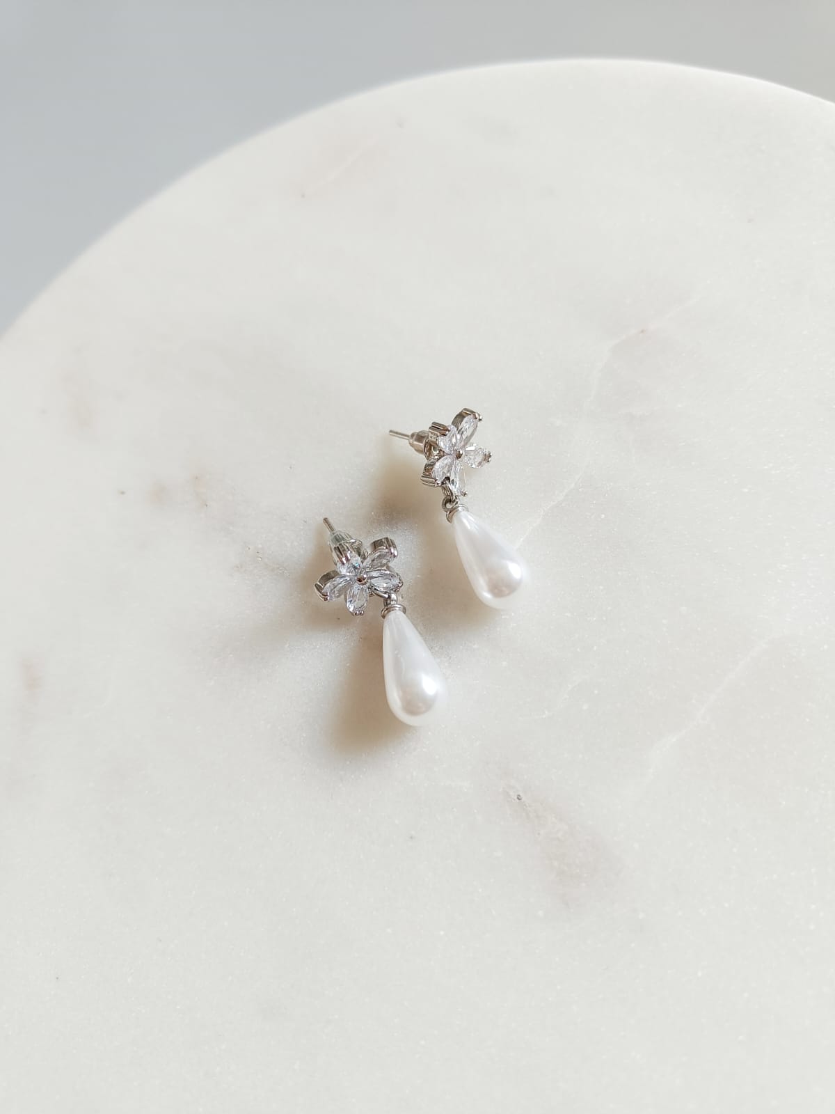 Srebrne kolczyki sztyfty wiszące krótkie KWIATY perły wyjściowe ŚLUBNE