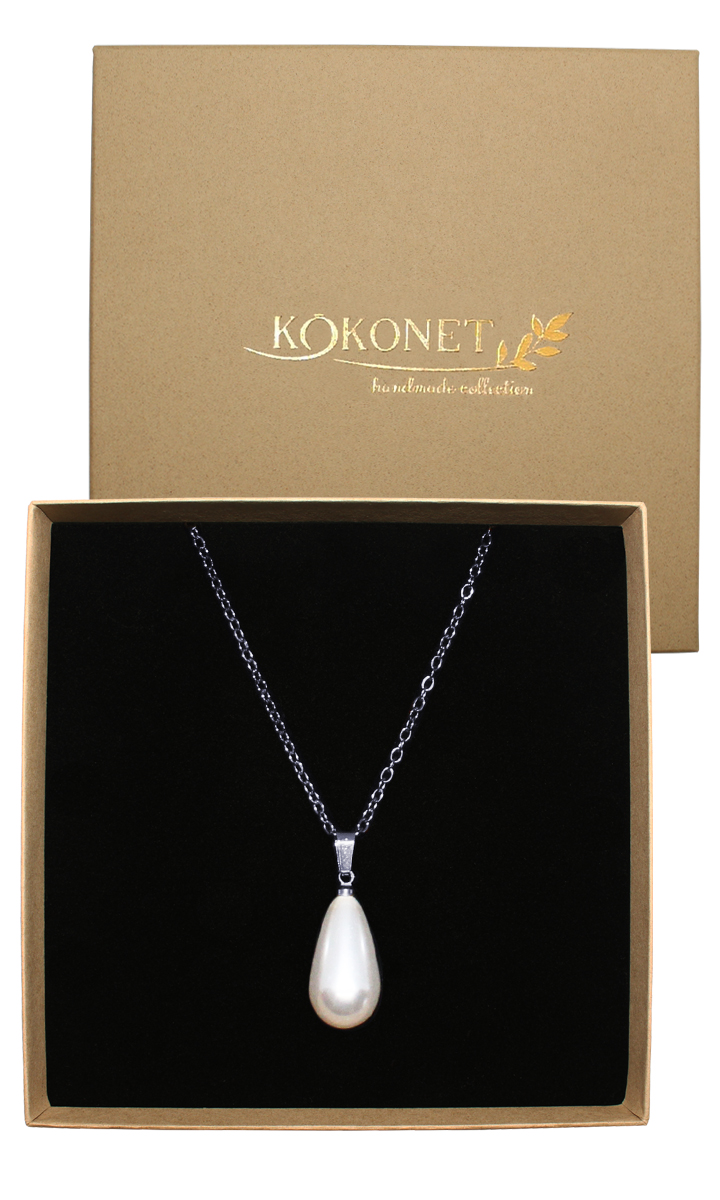 Srebrny naszyjnik z perłą kropla perłowy stalowy elegancki klasyczny TRENDY