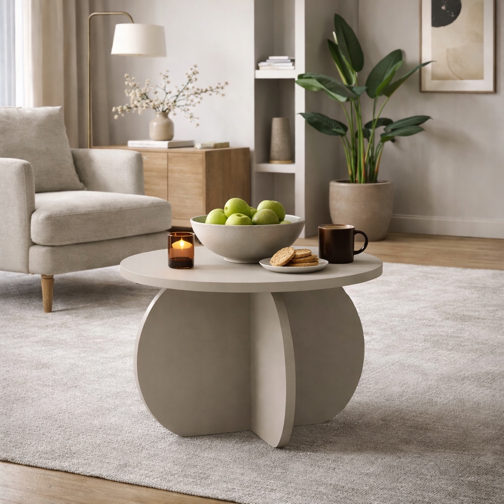 Stolik Kawowy YAPANDI Kaszmir 70 cm Okrągły Japandi Nowoczesny Do Salonu
