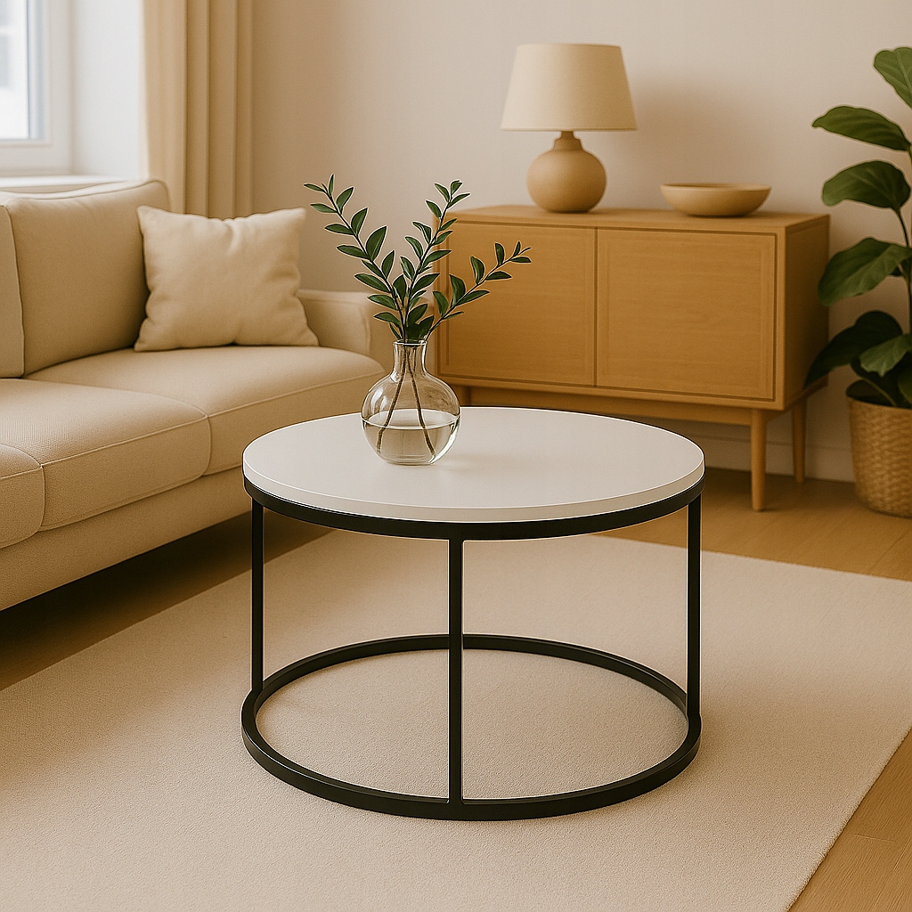 Stolik Kawowy BIAŁY 60 cm Metal Minimalizm Industrialny Styl SOFT LOFT