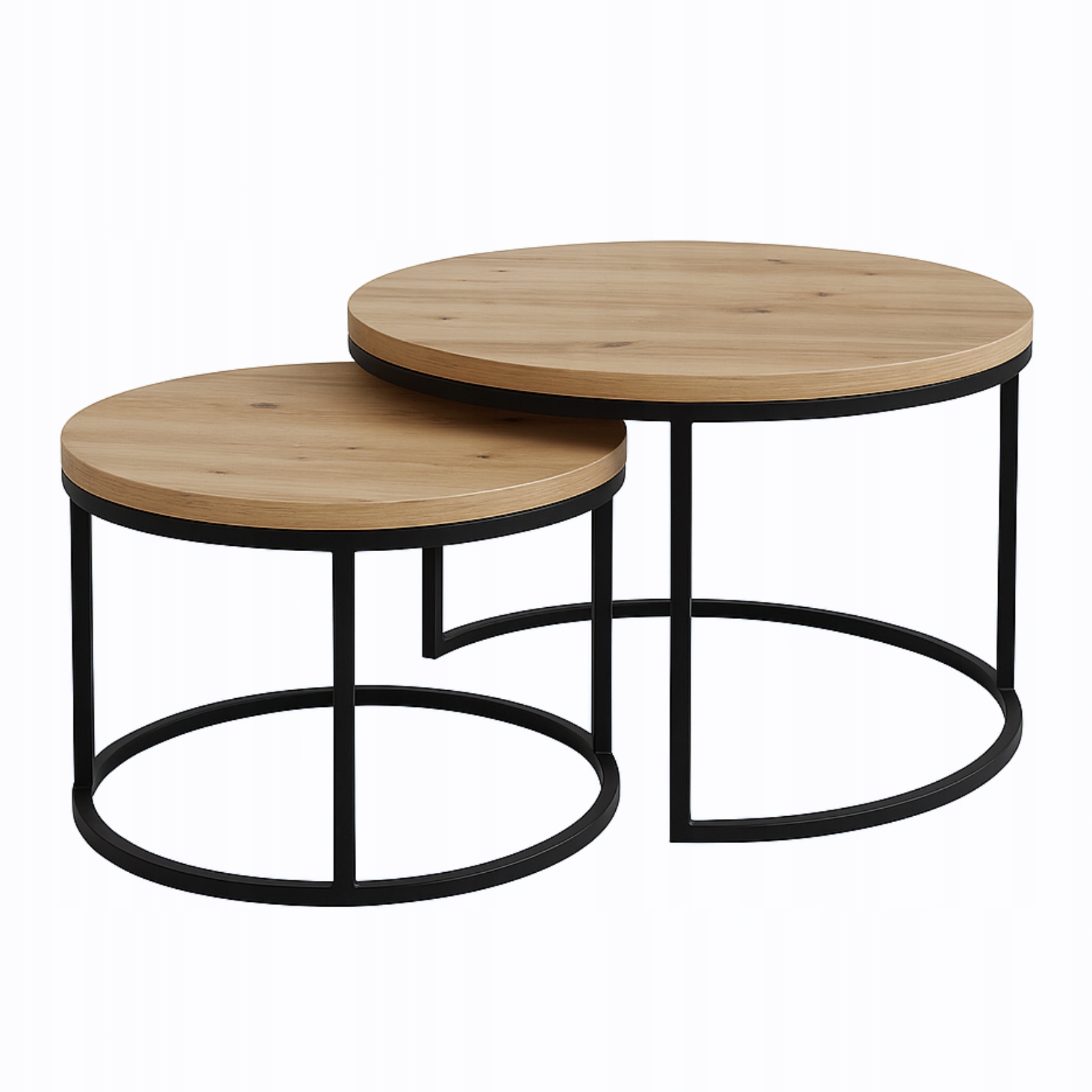 Stolik Kawowy DĄB CRAFT ZŁOTY Loft DUO Zestaw 2w1 DĄB + Czarne Nogi 80/60