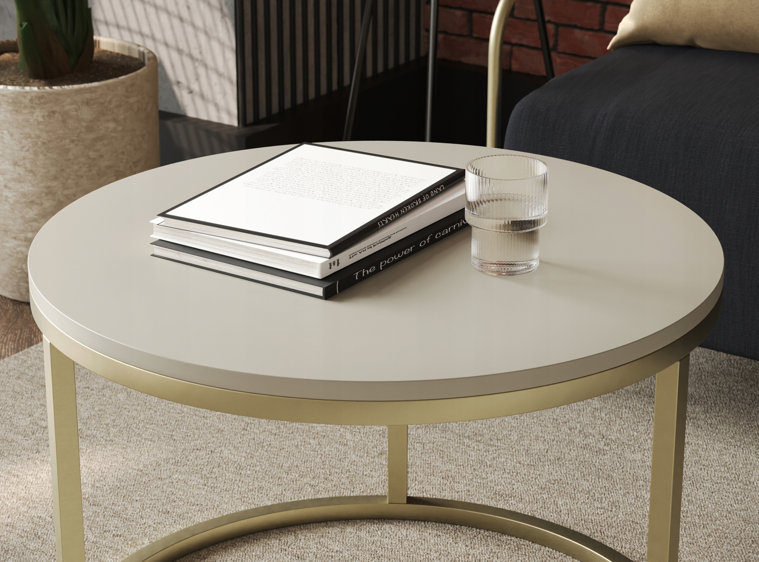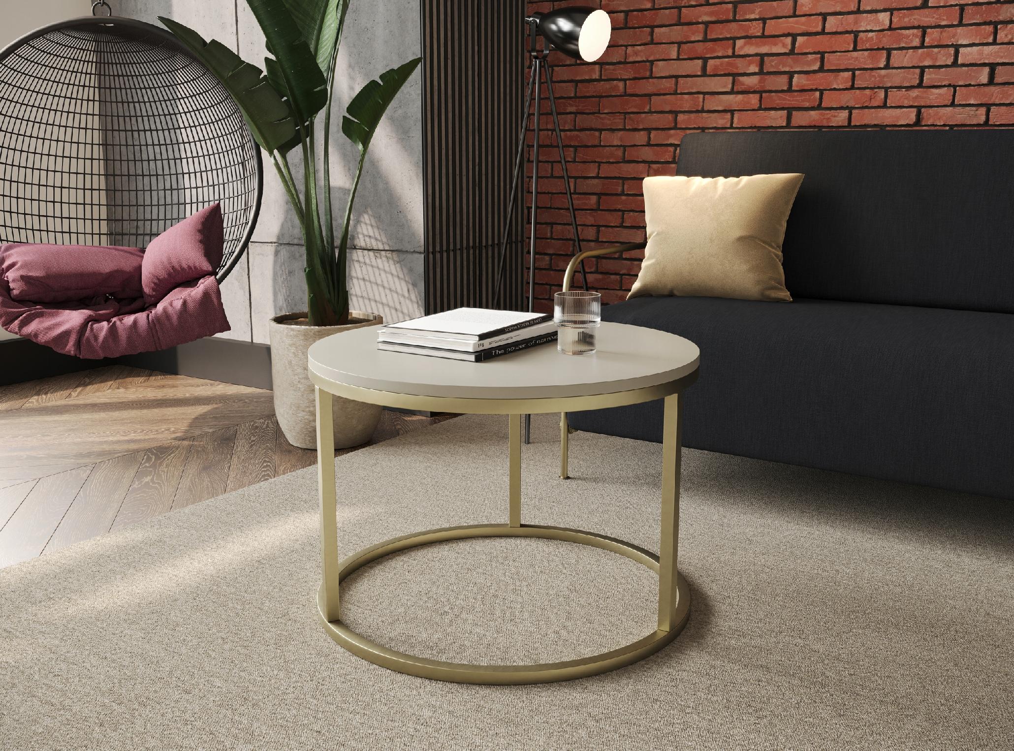 Stolik Kawowy KASZMIR SOFT LOFT GOLD Okrągły JAPANDI BOHO Salon Złoty 60cm