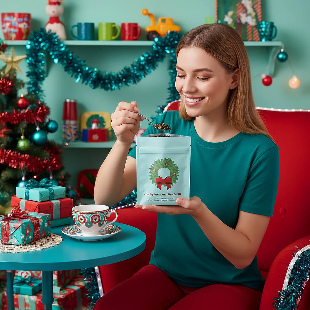 ŚWIĄTECZNA TOREBKA HERBATA ZIELONA LIŚCIASTA "BOŻONARODZENIOWA" - PREZENT UPOMINEK NA MIKOŁAJA ŚWIĘTA GWIAZDKĘ BOŻE NARODZENIE POD CHOINKĘ DLA KOBIETY FACETA
